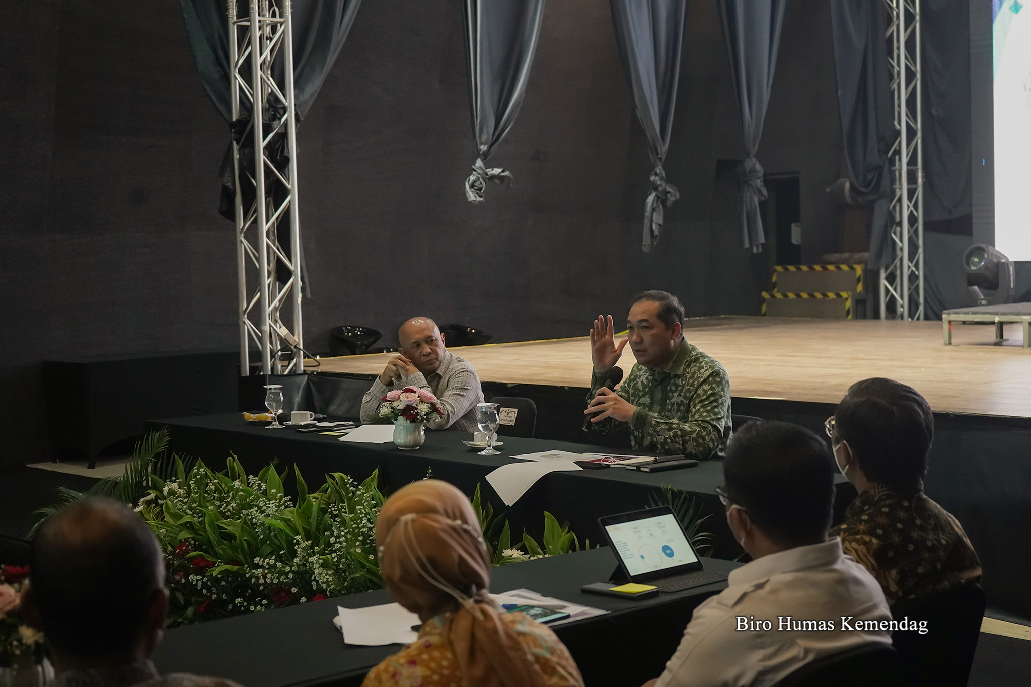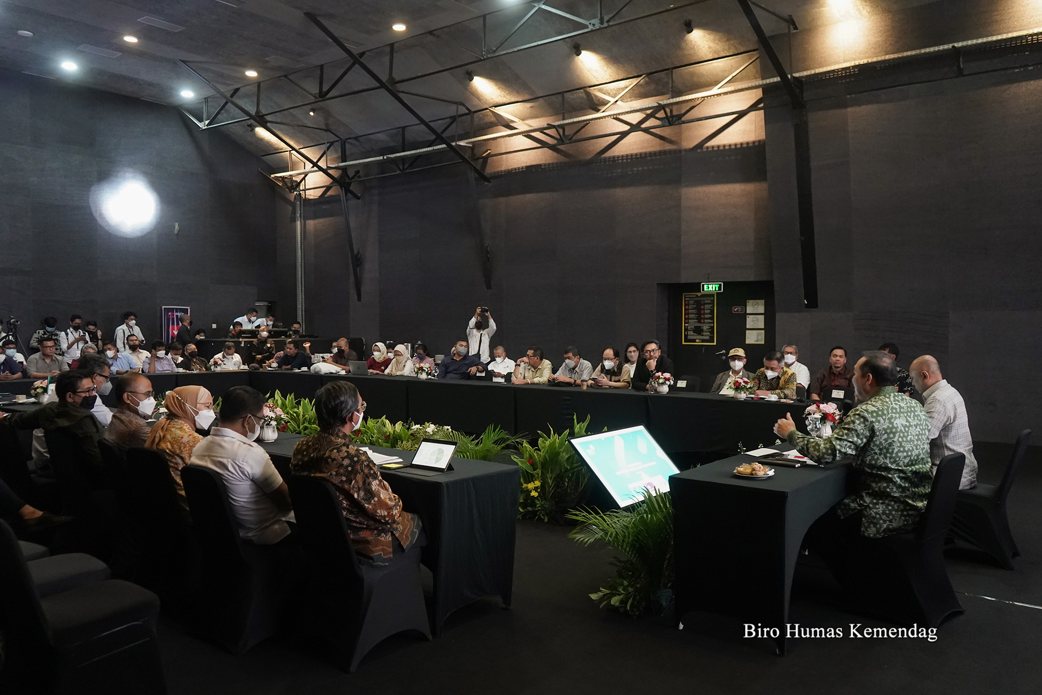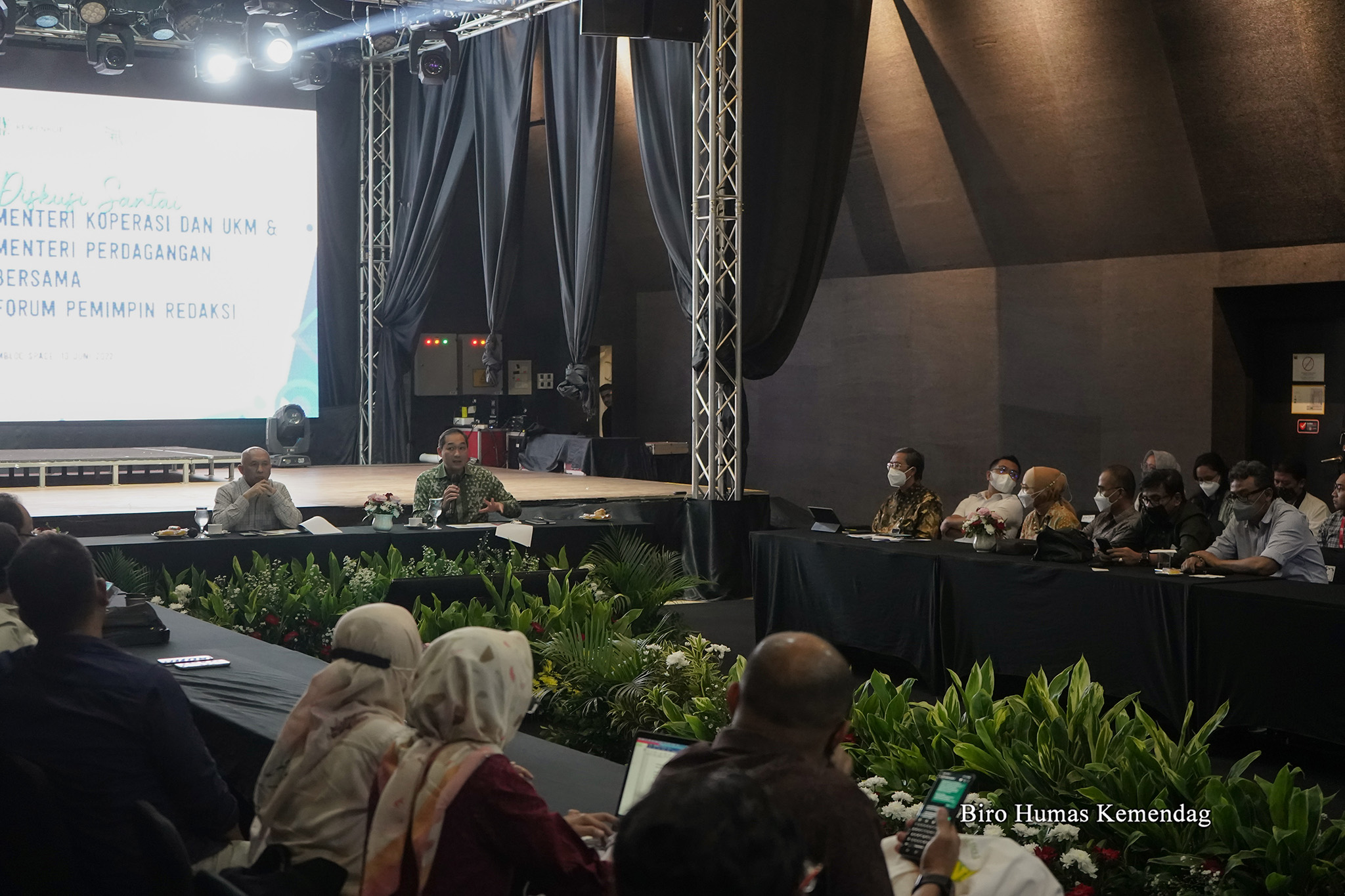 Menteri Perdagangan, Muhammad Lutfi bersama Menteri Koperasi dan UKM, Teten Masduki mengadakan diskusi santai bersama forum pemimpin redaksi di M Bloc Space, Jakarta, Senin (13 Juni).