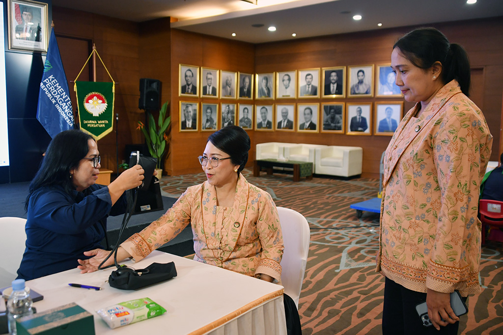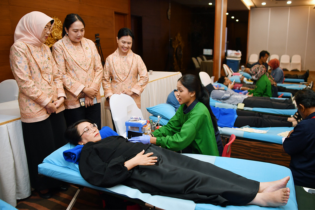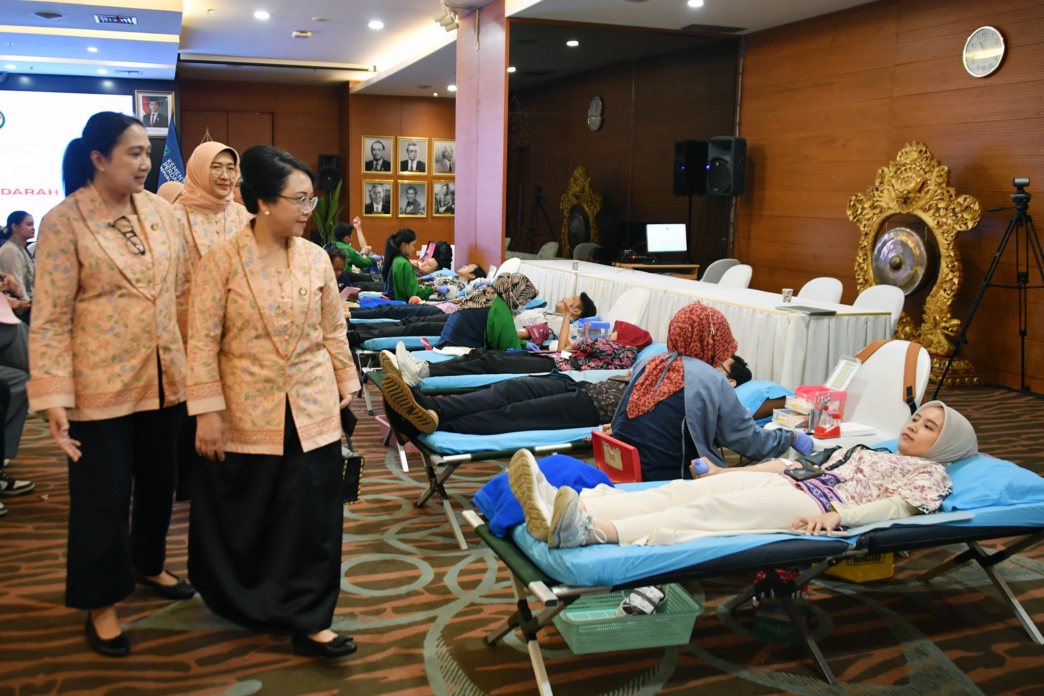 Dharma Wanita Persatuan (DWP) Kementerian Perdagangan menyelenggarakan kegiatan Donor Darah yang berlangsung di Kantor Kemendag Jakarta, Selasa (25 Nov)