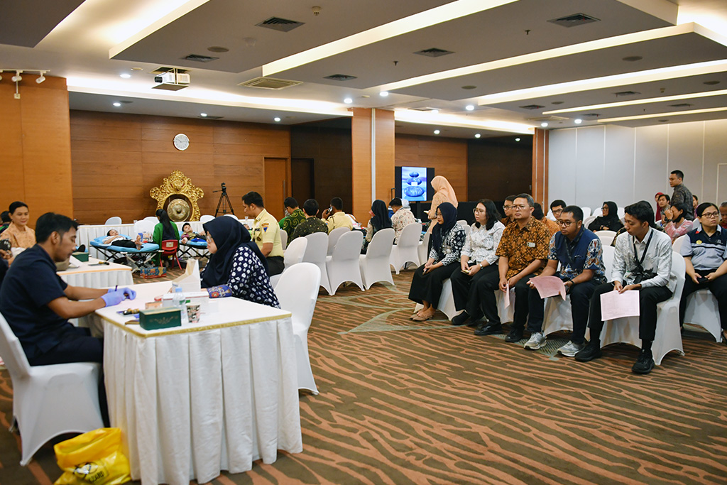 Donor darah dilaksanakan dalam rangka memperingati Hari Ulang Tahun DWP Kemendag ke 26 dan diikuti para Pejabat dan karyawan di lingkungan Kemendag serta pengurus DWP Kemendag.
