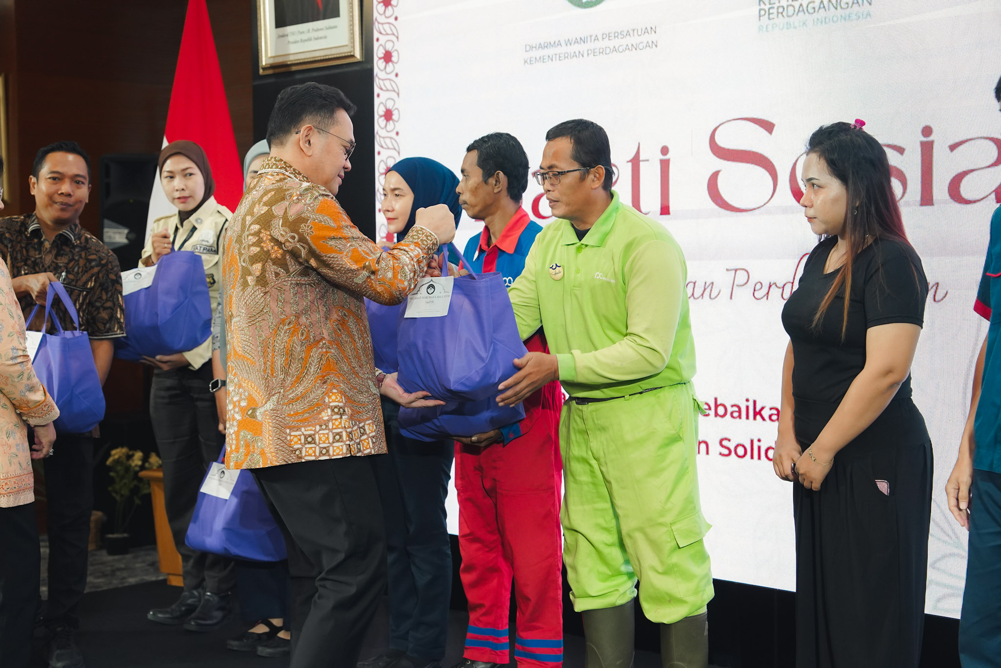 Terdapat 584 paket bantuan yang akan disalurkan kepada security, cleaning service, teknisi, dan tenaga operasional lainnya di lingkungan Kementerian Perdagangan.
