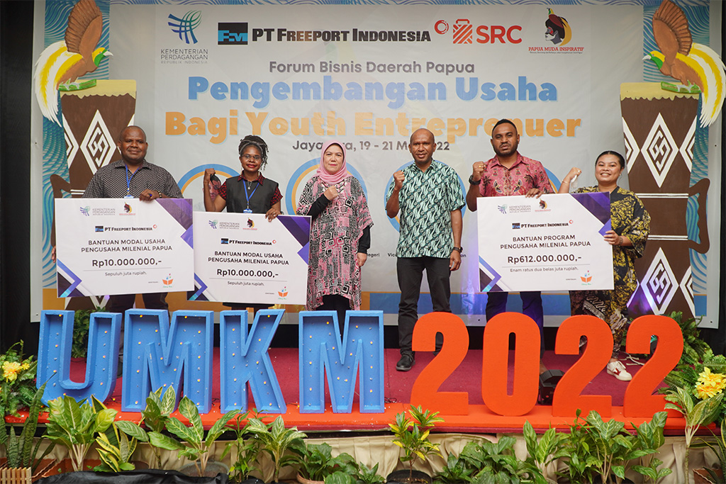 Dalam acara Forum Bisnis Daerah di Jayapura, PT Freeport Indonesia turut berpartisipasi dengan memberikan bantuan modal usaha kepada 30 UMKM di Papua dan Papua Barat terpilih dan UMKM yang tergabung dalam Papua Muda Inspiratif dengan nilai total sebesar Rp1 miliar (belum potong pajak).