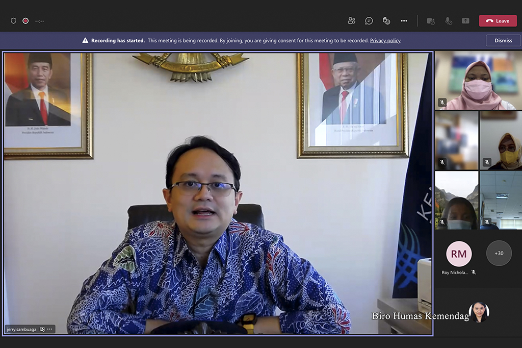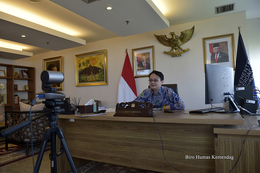 Wakil Menteri Perdagangan, Jerry Sambuaga membuka Forum Bisnis Temu Pengelola SRG dan Pengusaha Ritel yang berlangsung secara virtual di Jakarta, rabu (22 Des).