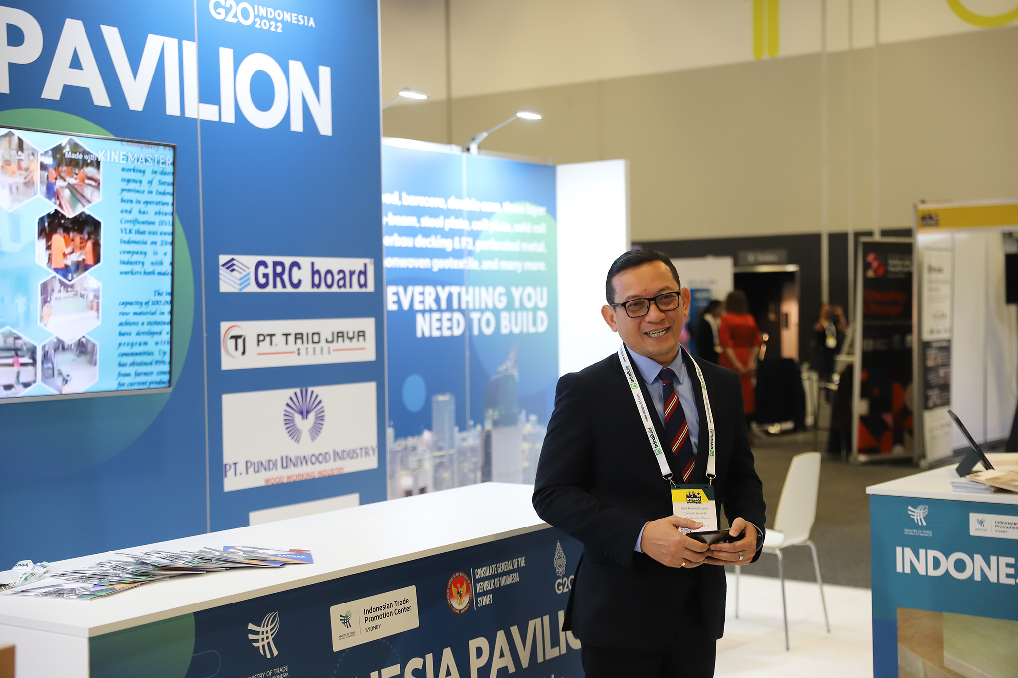 Indonesia berpartisipasi pada pameran produk bahan bangunan berskala internasional, Sydney Build Expo 2022 di Sydney, Australia. Paviliun Indonesia dibuka secara resmi oleh Direktur Jenderal Pengembangan Ekspor Nasional, Wakil Dubes RI Canberra, Konsul Jenderal RI Sydney, Direktur Pengembangan Promosi dan Citra, Atdag RI Canberra, dan Kepala ITPC Sydney di ICC Sydney, Rabu (1 Juni).