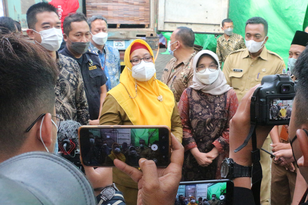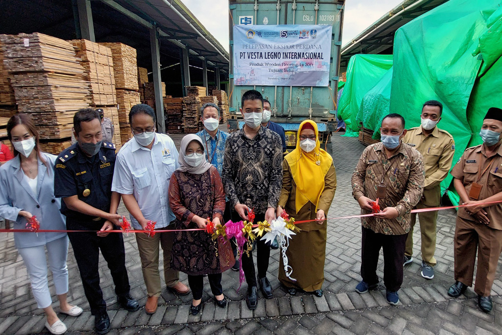 Turut hadir pada pelepasan ekspor yaitu Wakil Bupati Gresik, Aminatun Habibah dan Direktur PT Vesta Legno Internasional, Kevin Sieto.