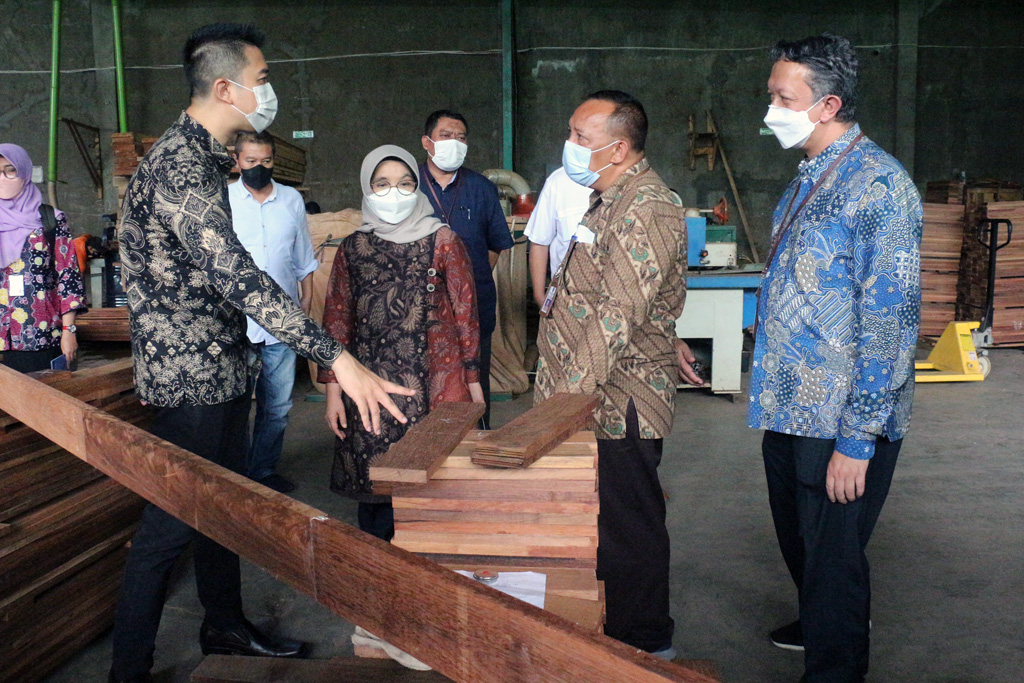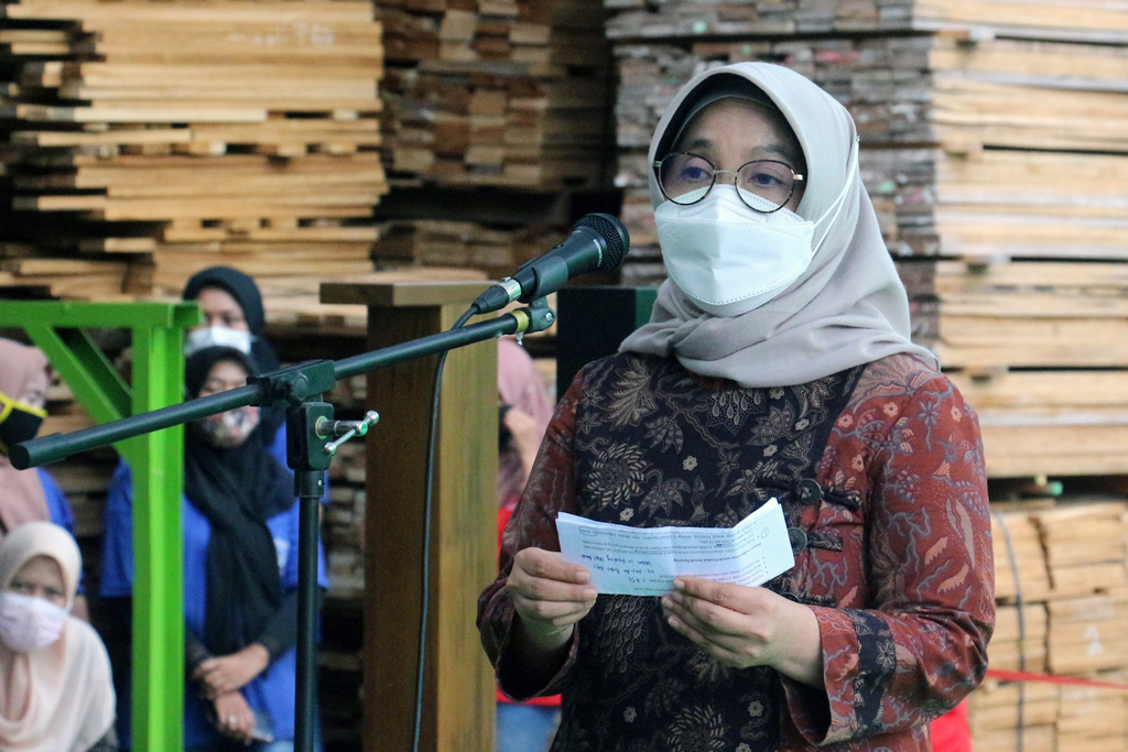 Sekretaris Direktorat Jenderal Pengembangan Ekspor Nasional, Ganef Judawati melepas ekspor perdana produk lantai kayu ke India sebesar USD 27 ribu bertempat di Gresik, Jawa Timur, Selasa (1 Mar).