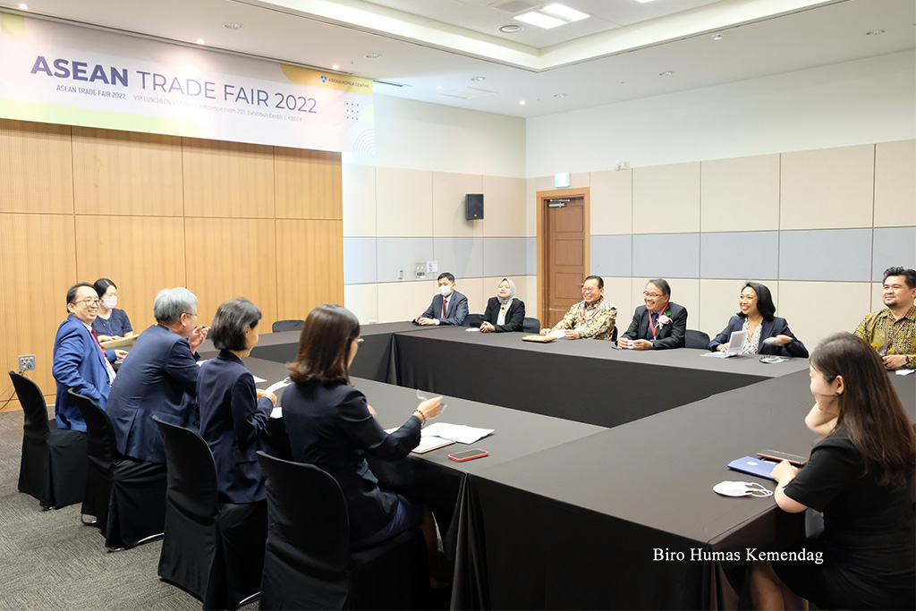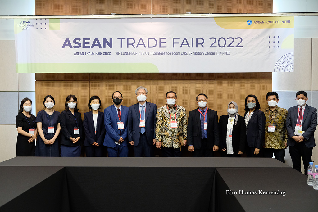 Dubes RI Seoul dan Dirjen PEN memperkenalkan produk makanan dan minuman dari Indonesia kepada Dubes 10 negara ASEAN yang berkesempatan tampil pada ASEAN Trade Fair 2022. ASEAN Trade Fair merupakan program pameran dagang tahunan yang diselenggarakan oleh AKC.