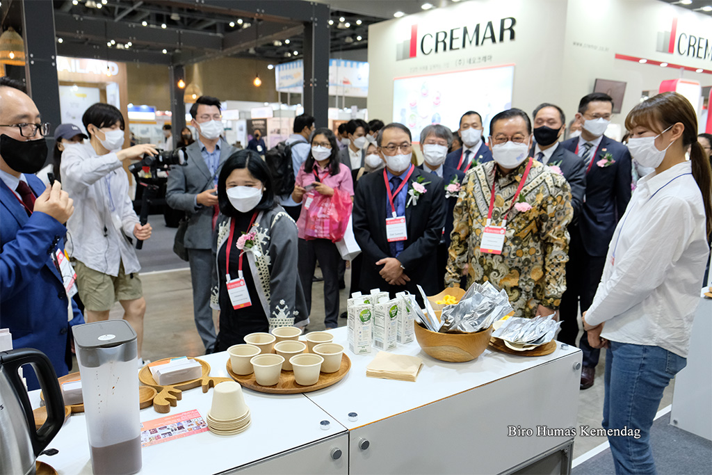 Kementerian Perdagangan bekerja sama dengan Kedutaan Besar Republik Indonesia Seoul dan ASEAN Korea Center (AKC) menyediakan dua paviliun yang digunakan oleh empat pelaku usaha kecil menengah (UKM) Indonesia yang menampilkan produk minuman cokelat, air kelapa, keripik kentang, santan, minyak kelapa, mie, biskuit, dan peralatan makan kayu.