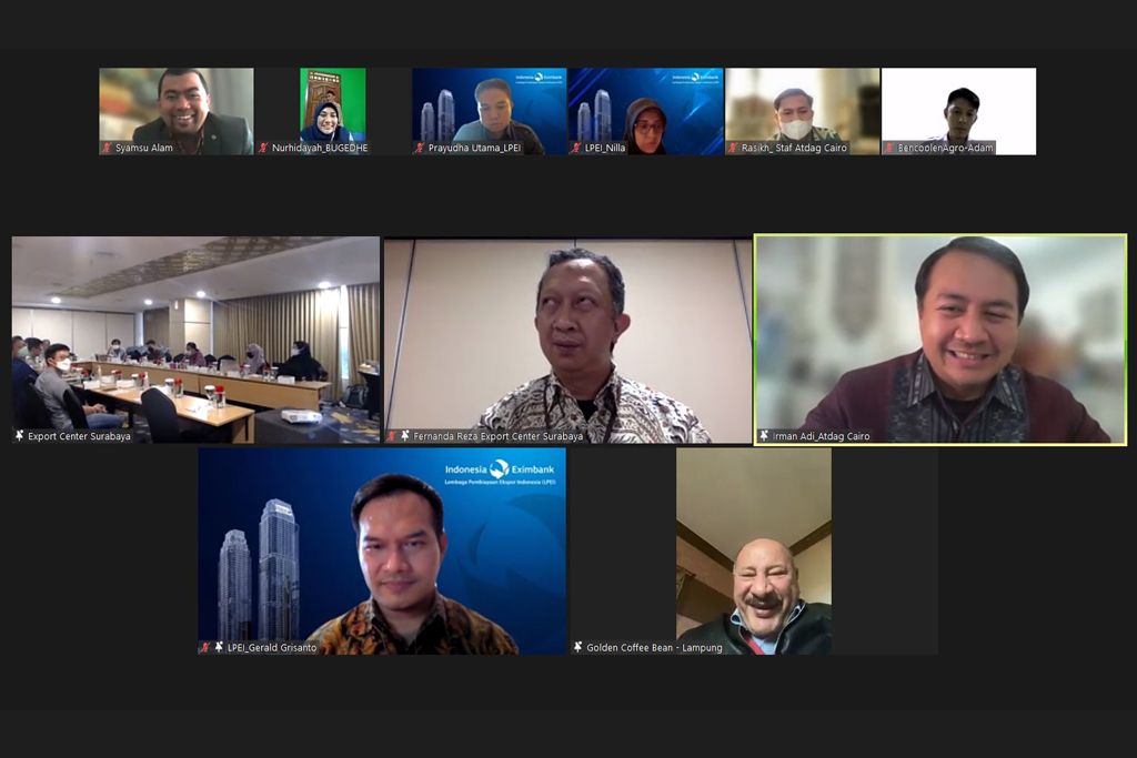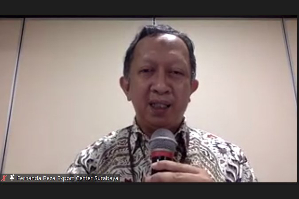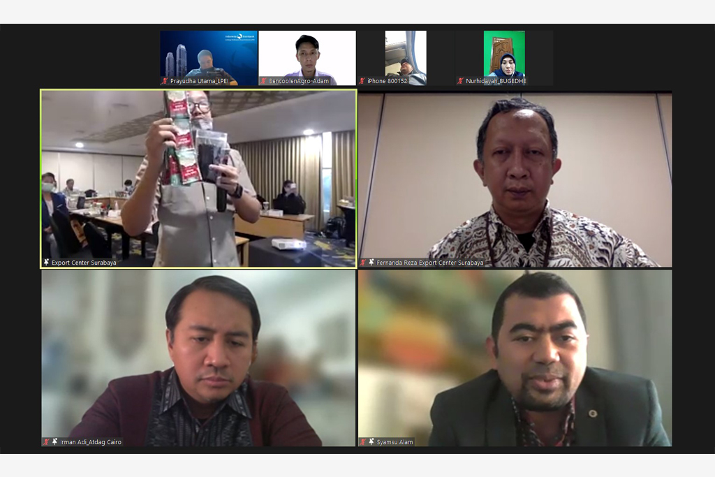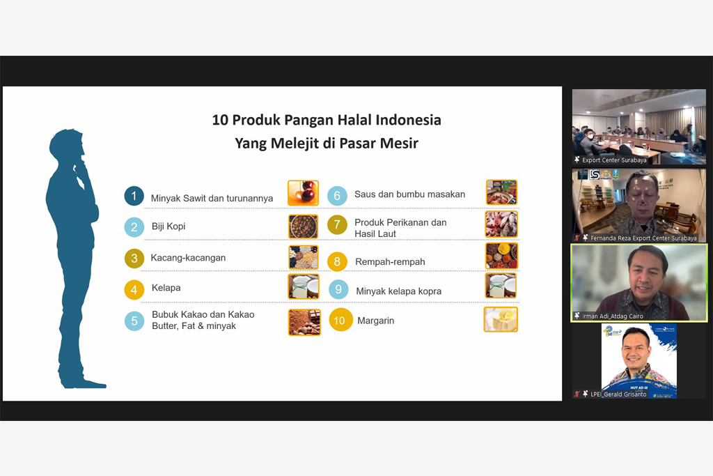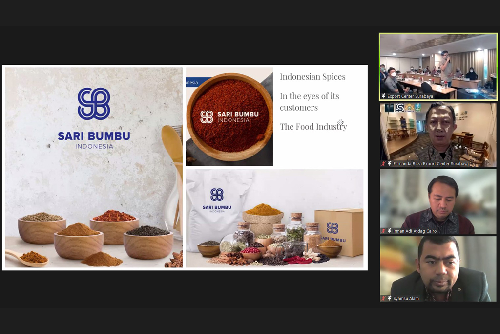 Acara dipandu oleh tenaga teknis Export Center Surabaya, Fernada Reza dan menghadirkan narasumber Atase Perdagangan RI Kairo, Irman Adi.