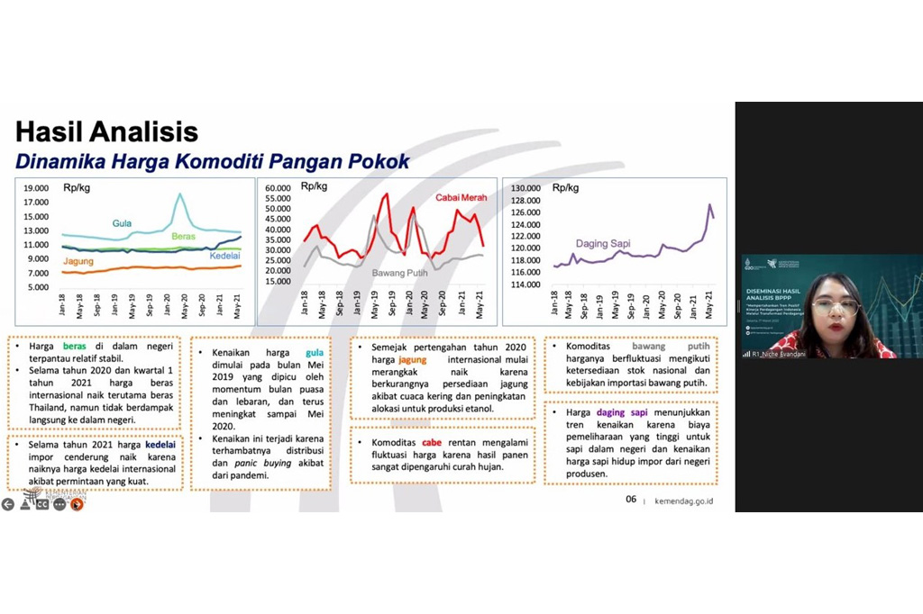 Kepala BPPP menyampaikan bahwa Kementerian Perdagangan akan terus berupaya untuk menjaga tren positif kinerja perdagangan dalam dan luar negeri di tengah berbagai tantangan. Hal tersebut dilakukan melalui transformasi perdagangan yang berfokus pada peningkatan ekspor nonkomoditas dan digitalisasi perdagangan.