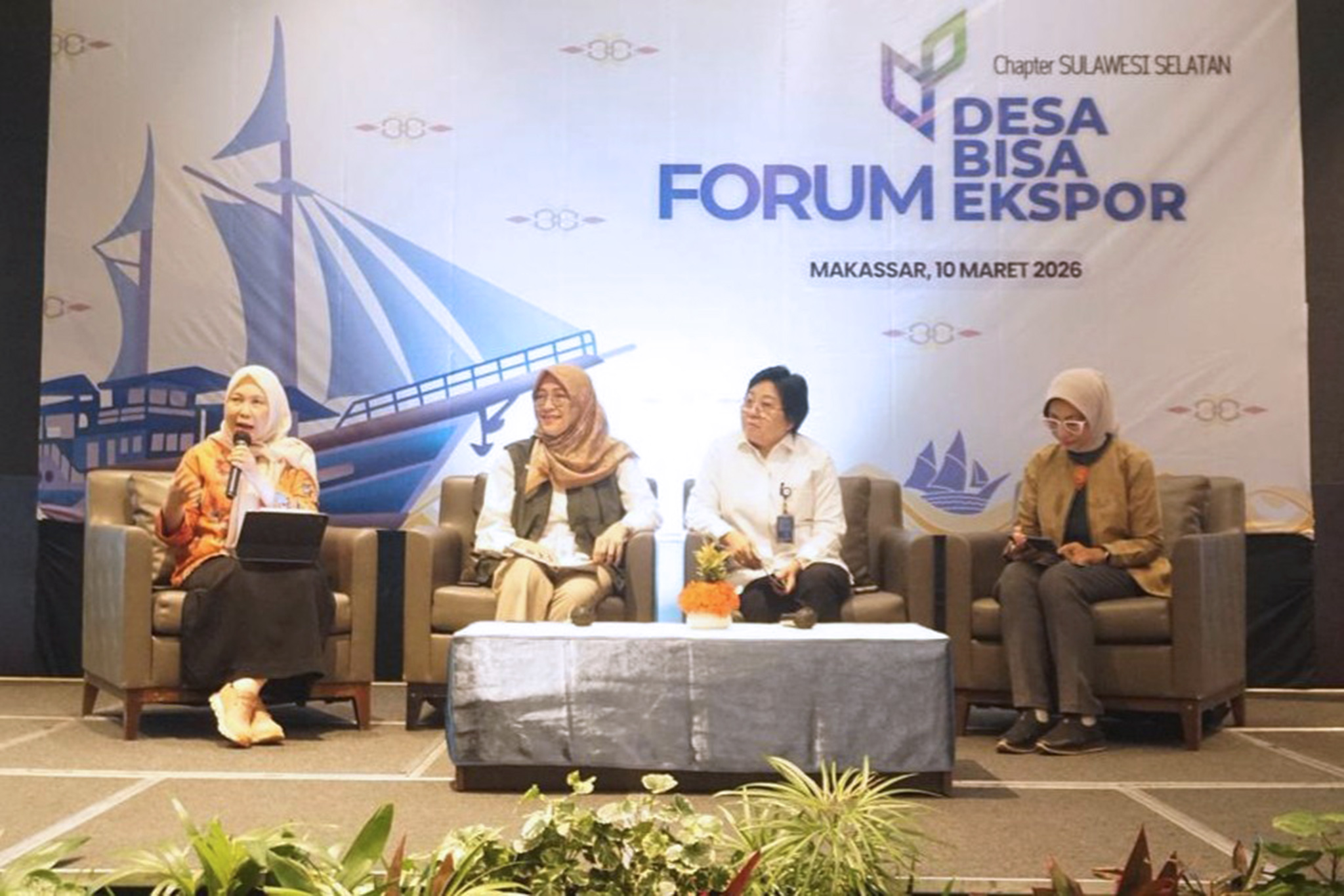 Kementerian Perdagangan menggelar Forum Desa BISA Ekspor Chapter Sulawesi Selatan yang dibuka dengan talkshow bertajuk “Penguatan Ekosistem Desa Berorientasi Ekspor melalui Sinergi Lintas Kementerian” di Makassar, Sulawesi Selatan, Selasa (10 Maret).