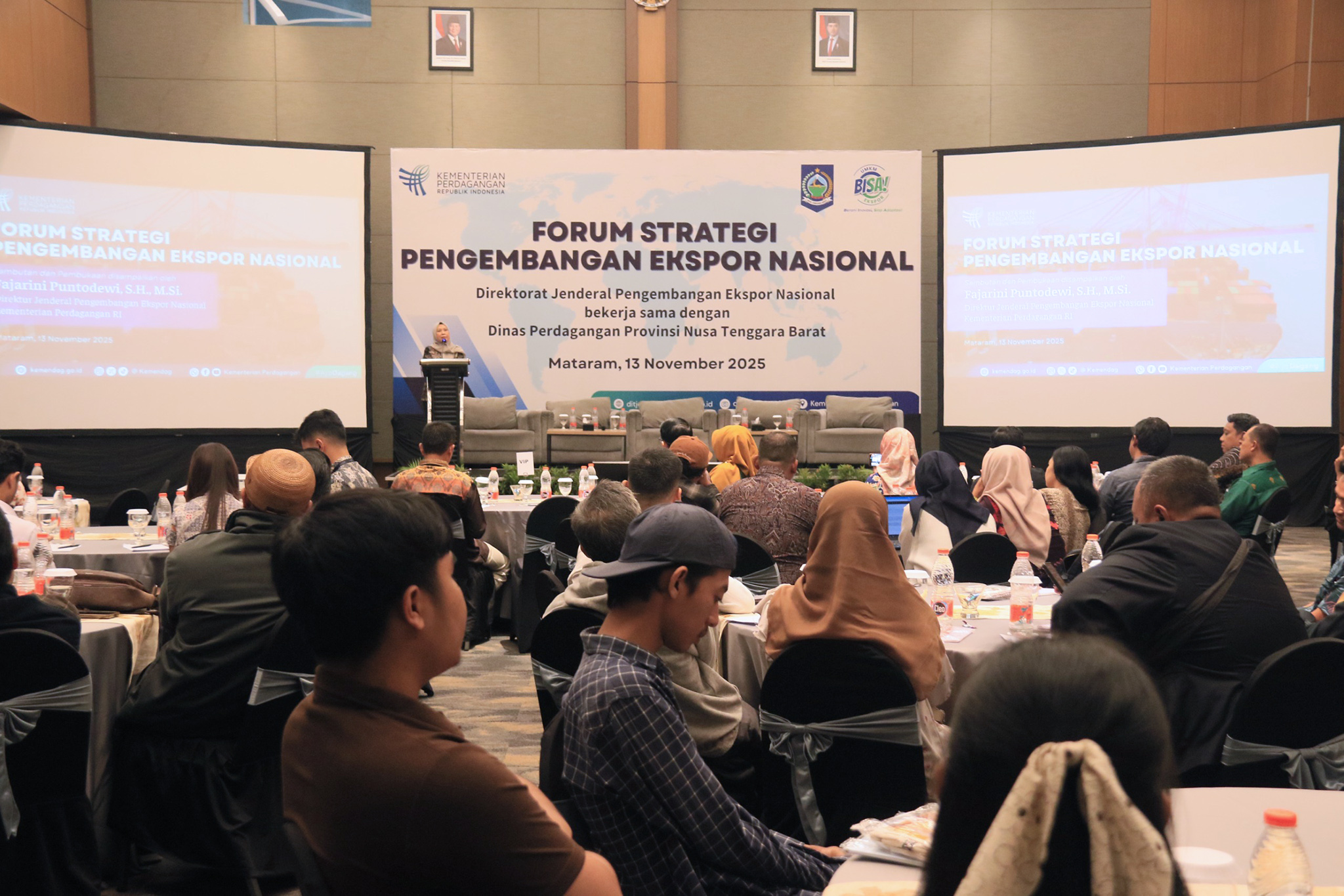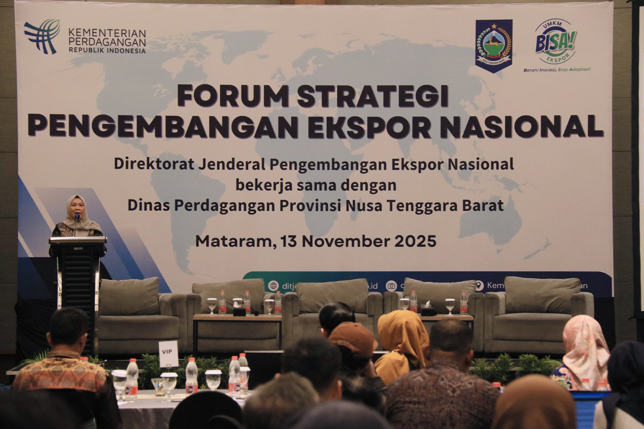 Direktur Jenderal Pengembangan Ekspor Nasional, Fajarini Puntodewi membuka Forum Strategi Pengembangan Ekspor di Mataram, Nusa Tenggara Barat, Kamis (13 Nov).
