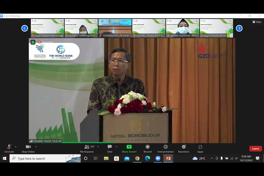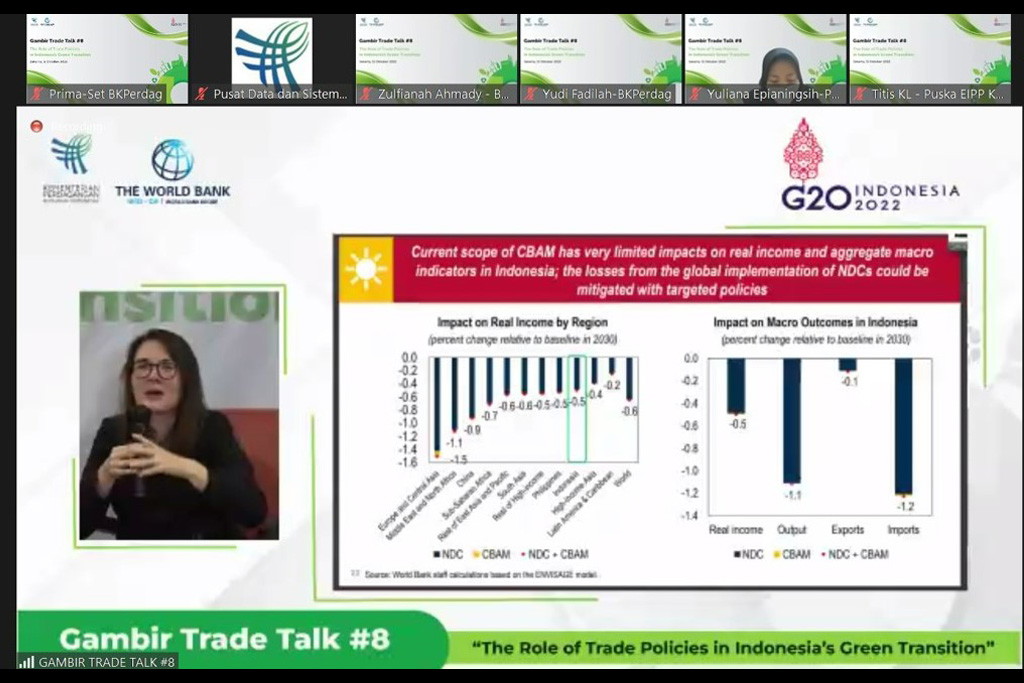Kementerian Perdagangan bekerja sama dengan World Bank menyelenggarakan Dialog Kebijakan Gambir Trade Talk (GTT) ke-8 dengan tema “The Role of Trade Policies in Indonesia's Green Transition” secara hibrida di Hotel Borobudur, Jakarta, Rabu (12 Okt).