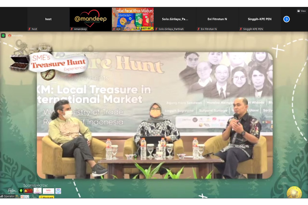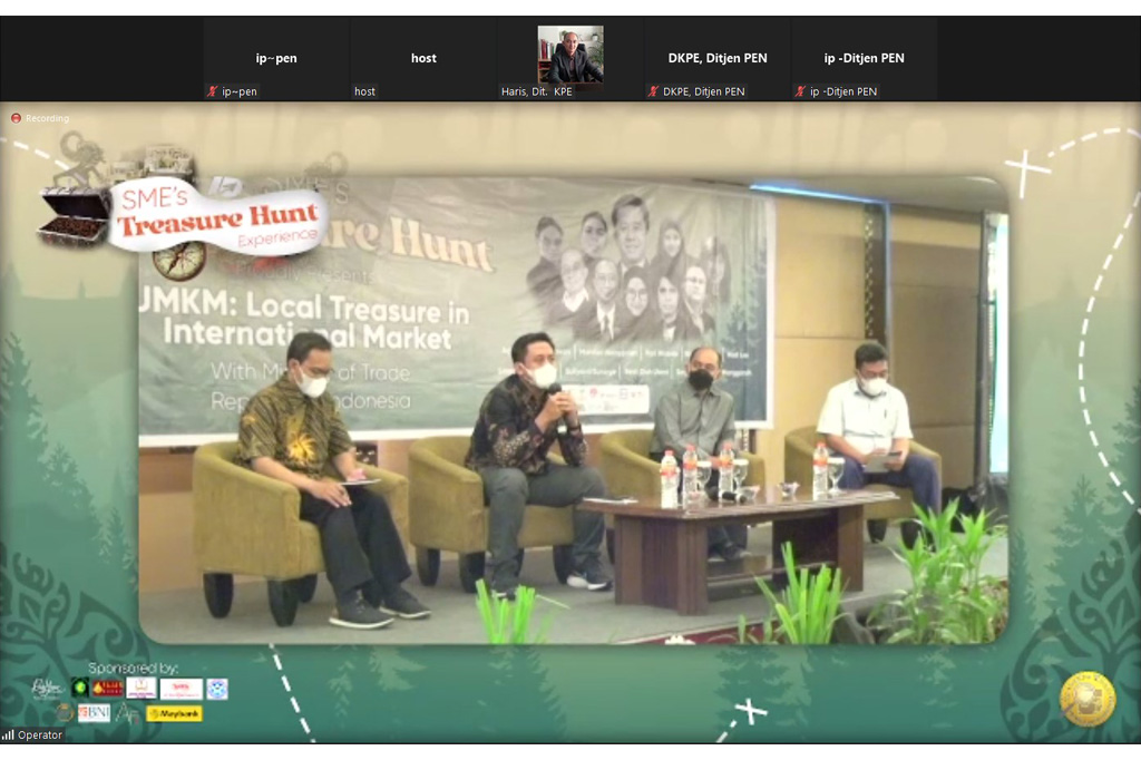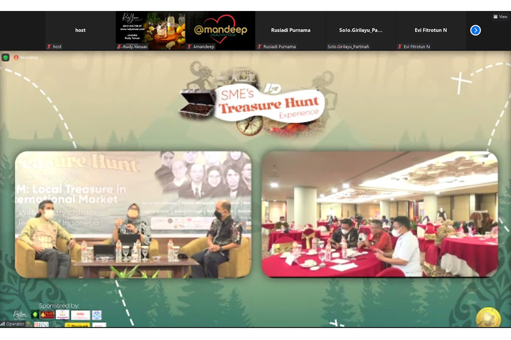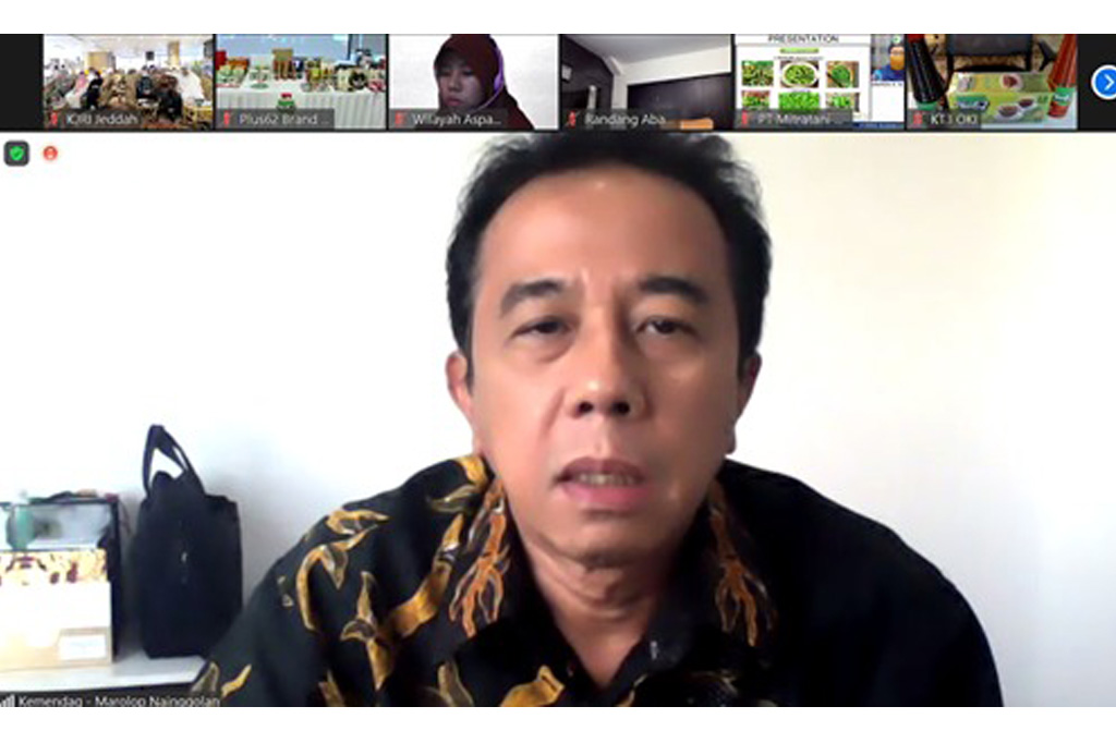 Direktur Kerja Sama Pengembangan Ekspor, Marolop Nainggolan memberikan sambutan secara virtual pada acara Lokakarya dan Penjajakan Kesepakatan Bisnis dengan tema “SMES’S ID Treasure Hunt” yang digelar di Solo, Jawa Tengah, Jumat (10 Des).