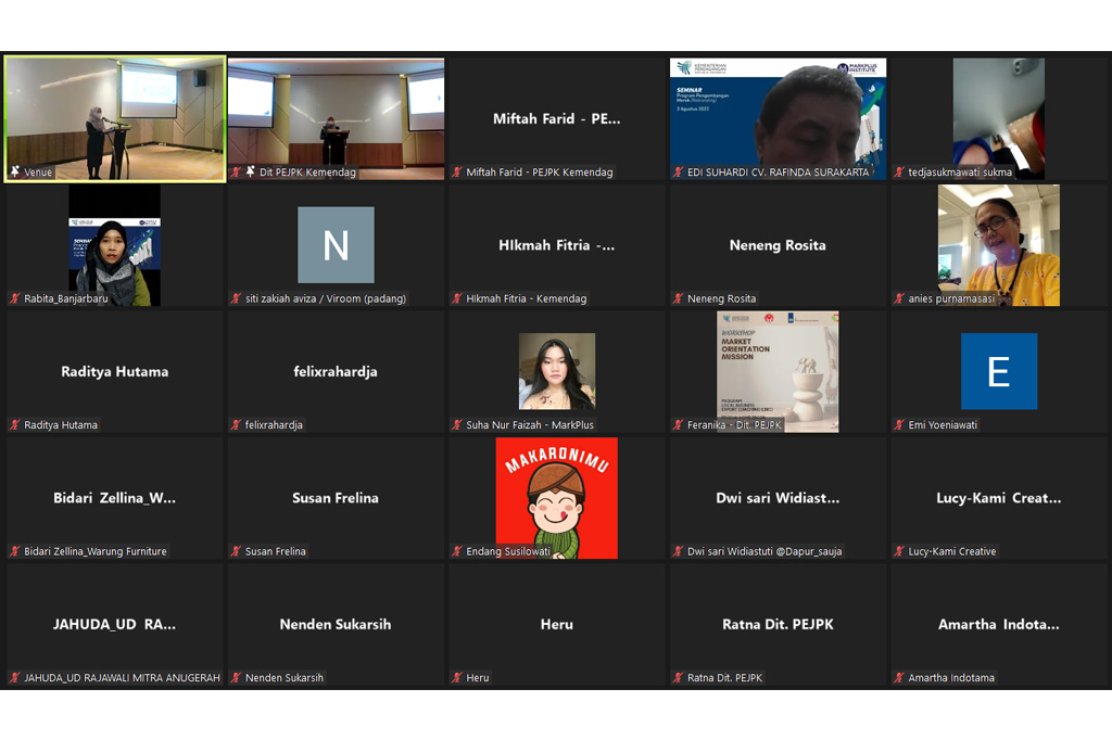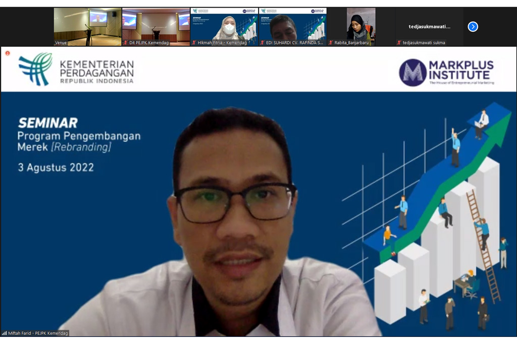Seminar yang digelar hibrida ini merupakan rangkaian program fasilitasi pengembangan merek untuk membantu pelaku usaha berorientasi ekspor dalam membangun merek di pasar global.