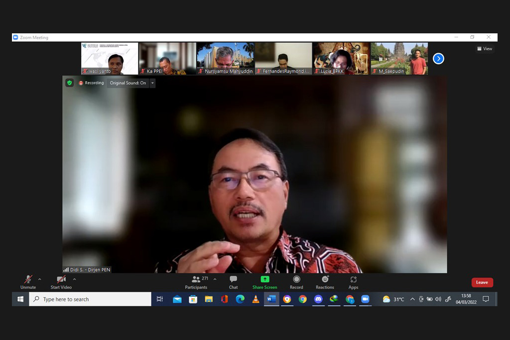 Direktur Jenderal Pengembangan Ekspor Nasional, Didi Sumedi membuka Webinar Persiapan dan Kiat Mengembangkan Bisnis Ekspor pada Jumat (4 Mar). Didi mengatakan, banyak hal yang perlu dipersiapkan dalam memasuki pasar ekspor, di antaranya pelaku usaha perlu mengenal dengan baik mitra dagang, memahami standar dan selera pasar negara tujuan ekspor serta cara berpromosi.