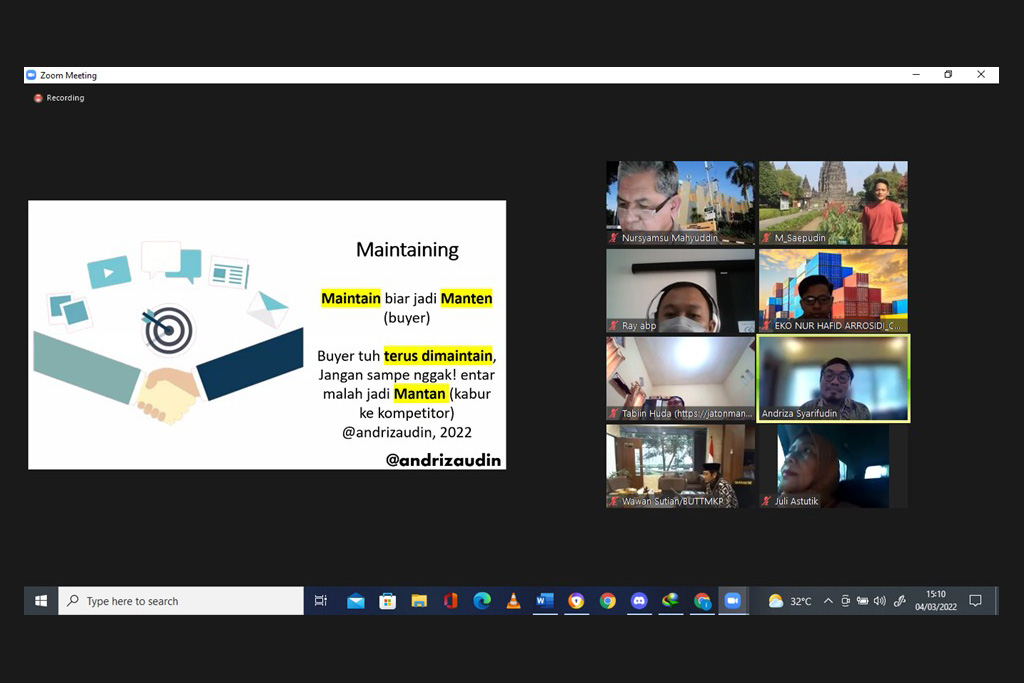 Seminar daring ini digelar untuk memotivasi dan menyiapkan pelaku usaha, terutama kalangan UKM dan pemula untuk memasuki pasar ekspor.