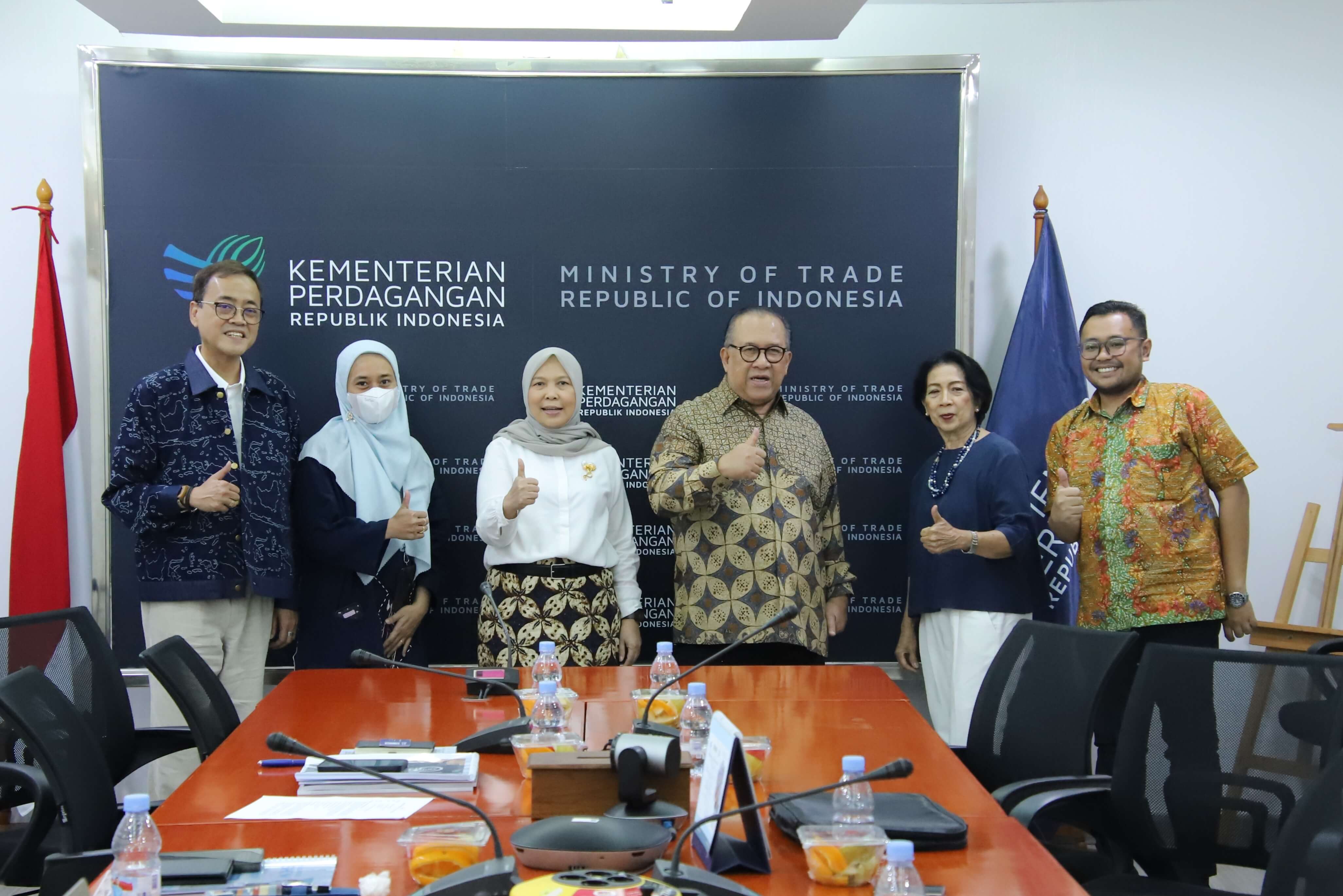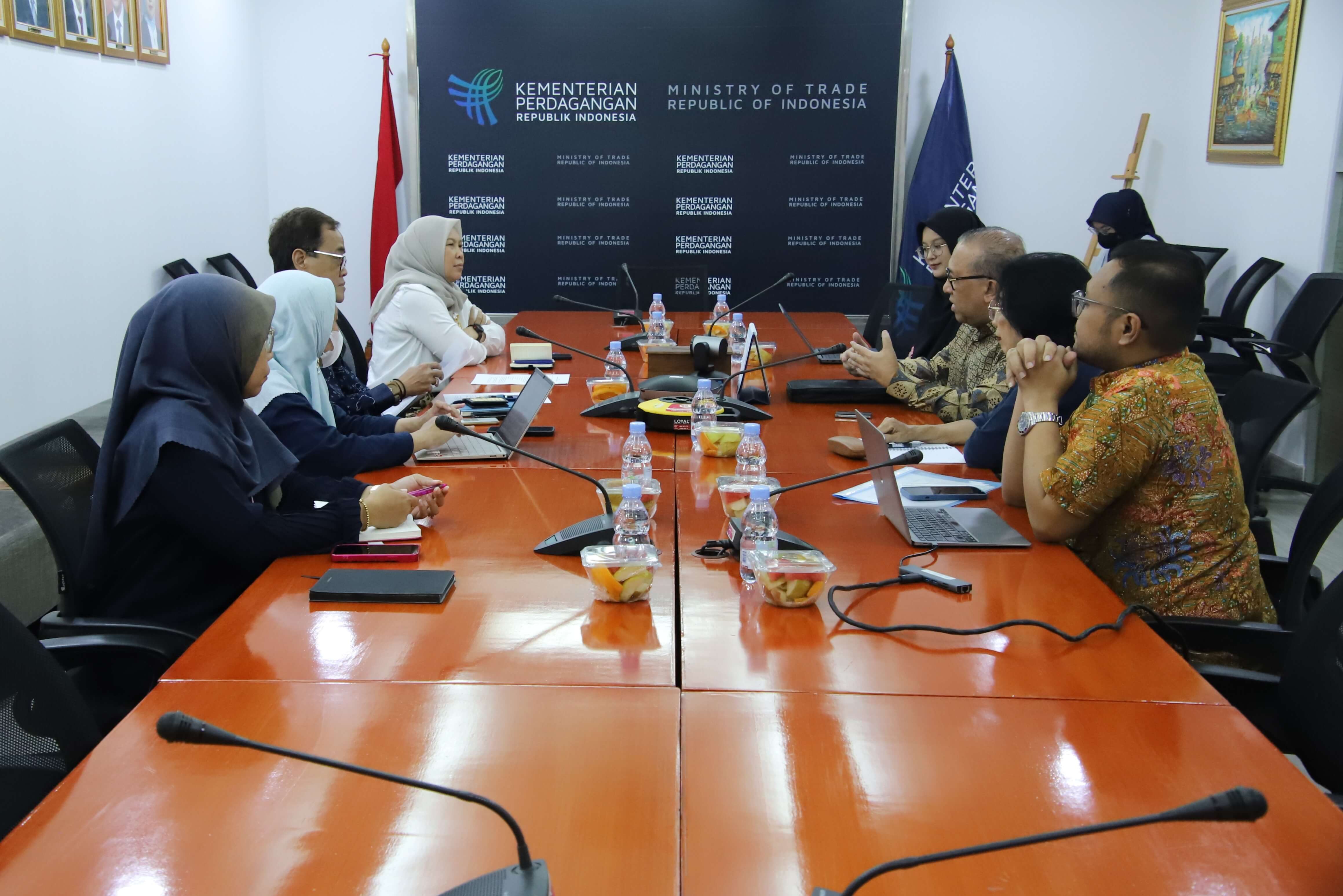 Direktur Jenderal Pengembangan Ekspor Nasional, Fajarini Puntodewi didampingi Direktur Pengembangan Ekspor Jasa dan Produk Kreatif, Ari Satria menerima audiensi Chairman Indonesia Halal Lifestyle Center, Sapta Nirwandar di Kantor Kementerian Perdagangan, Jakarta, Rabu (3 Des).