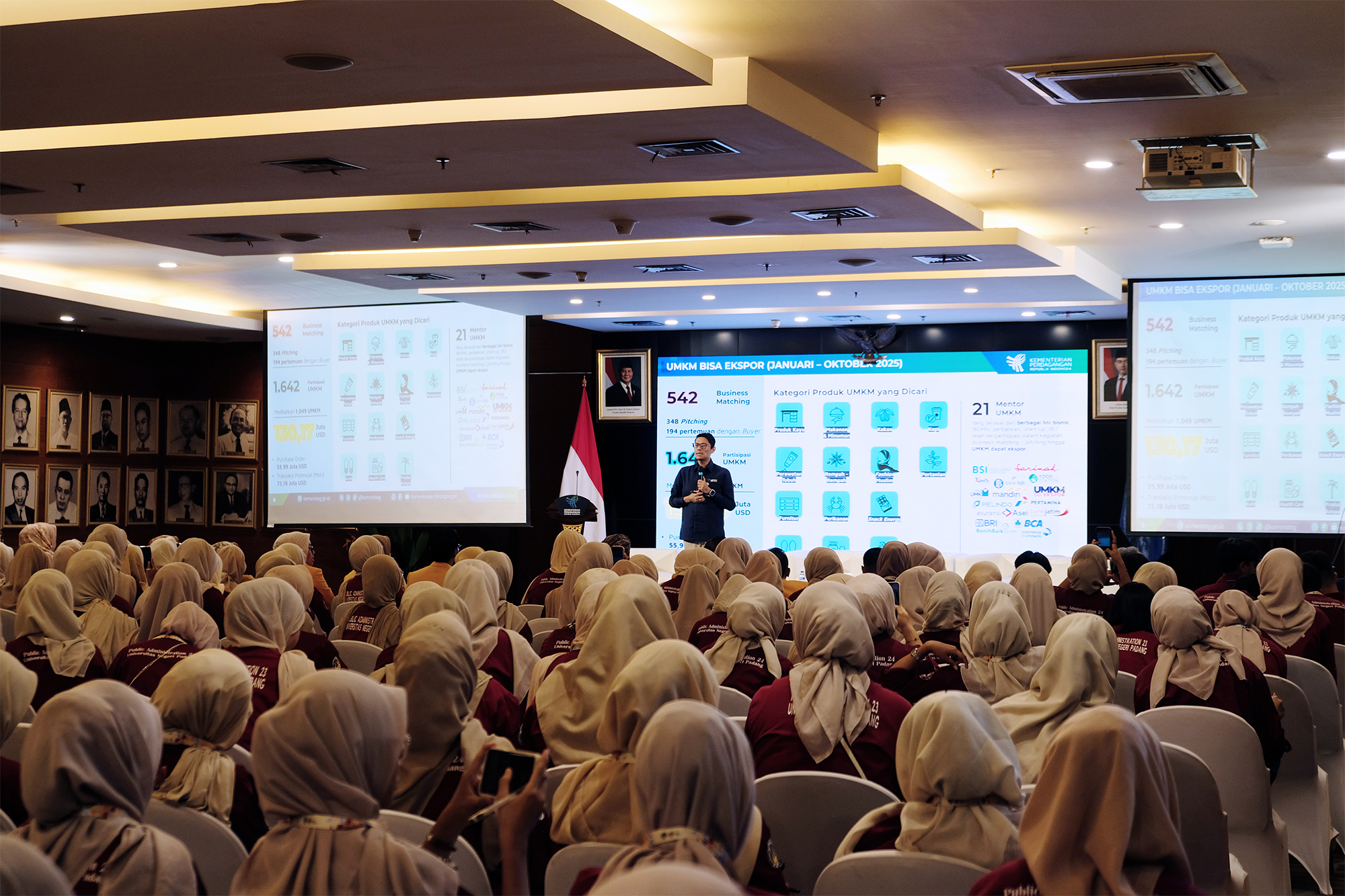 Kementerian Perdagangan menerima kunjungan mahasiswa Universitas Negeri Padang (UNP) di Kantor Kementerian Perdagangan, Jakarta, Rabu (12 Nov). Kunjungan diterima oleh Direktur Jenderal Perdagangan Dalam Negeri, Iqbal Shoffan Shofwan.