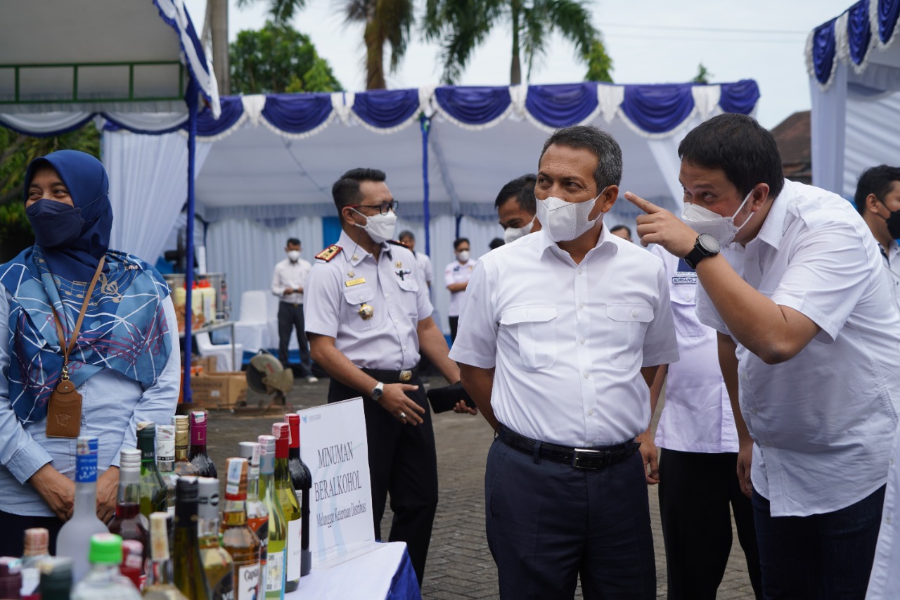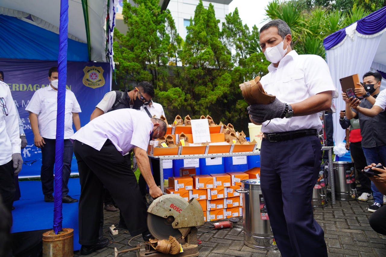 Barang yang dimusnahkan meliputi 3.303 botol minuman beralkohol berbagai merek, 150 pasang sepatu pengaman, serta ratusan alat pertanian dan pemanas air listrik. Seluruhnya merupakan produk impor yang tidak sesuai ketentuan dan peraturan yang berlaku.