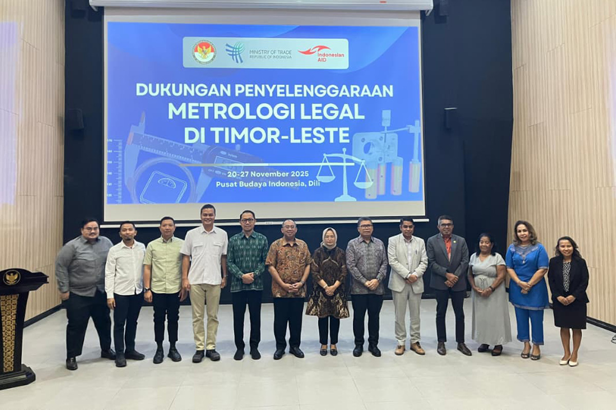Direktorat Metrologi Kementerian Perdagangan bersama Indonesian AID/Lembaga Dana Kerja Sama Pembangunan Internasional (LDKPI) Kementerian Keuangan melaksanakan rangkaian Kegiatan Pendampingan Pelayanan Tera Ulang dan Penyusunan Regulasi Teknis di Bidang Metrologi Legal di Gedung Pusat Budaya Indonesia, Dili, Timor Leste pada 20–27 November 2025. Kegiatan ini dibuka secara resmi oleh Direktur Metrologi, Sri Astuti pada Kamis (20 Nov).