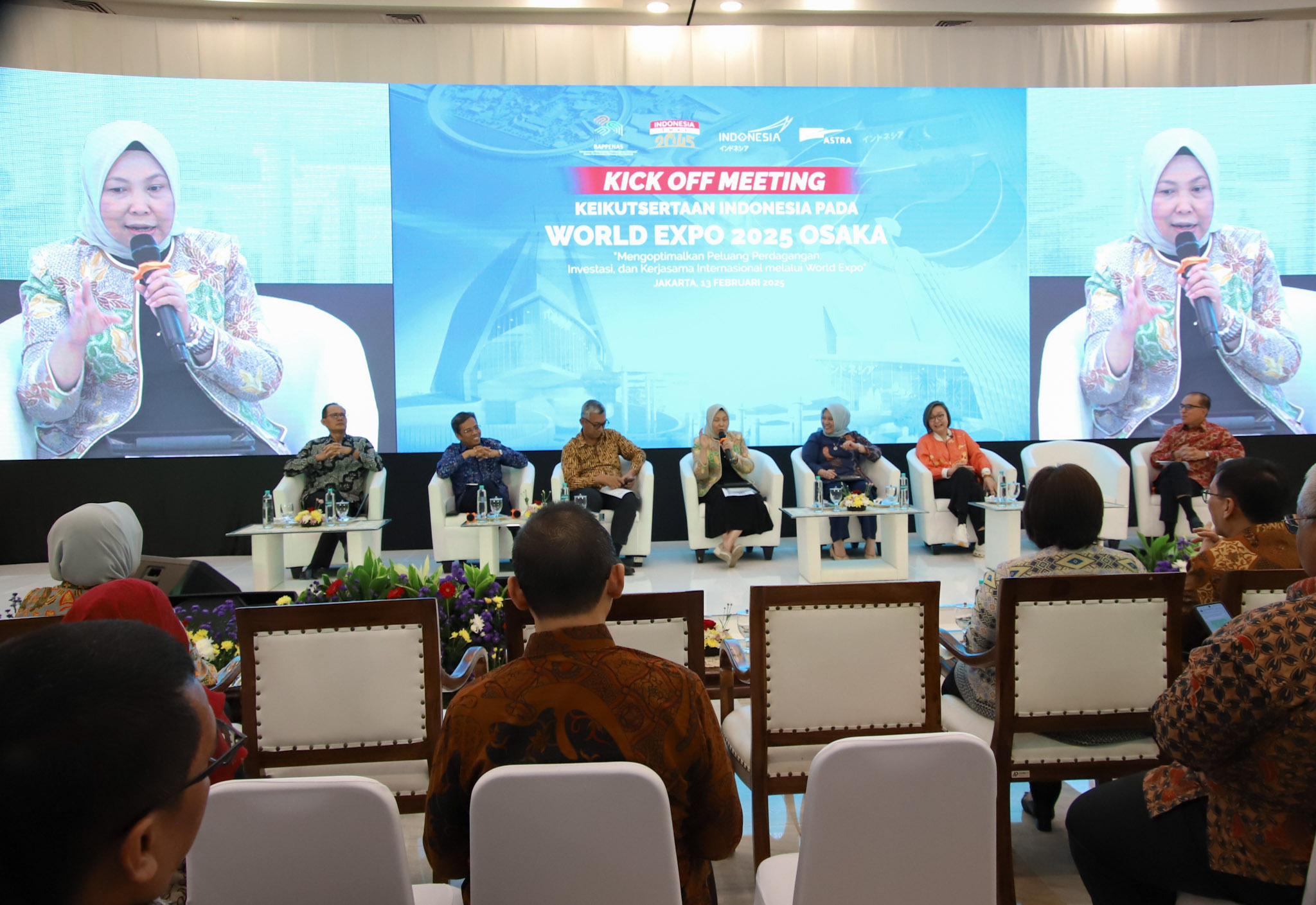 Direktur Jenderal Pengembangan Ekspor Nasional, Fajarini Puntodewi menjadi panelis pada Kick Off Meeting Keikutsertaan Indonesia pada World Expo 2025 Osaka yang dilaksanakan di Kantor Kementerian Perencanaan Pembangunan Nasional/Bappenas, Jakarta, Kamis (13 Feb).