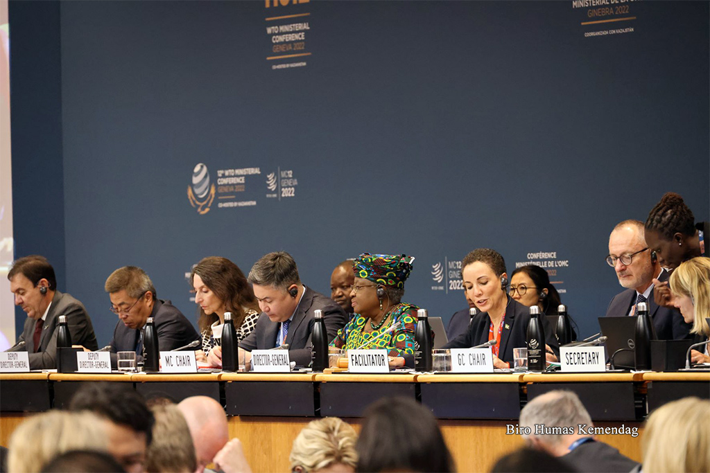 Direktur Jenderal Perundingan Perdagangan Internasional, Djatmiko B. Witjaksono mewakili Menteri Perdagangan RI mengikuti pertemuan sesi tematik Reformasi WTO pada KTM ke-12 WTO di Jenewa, Swiss, Rabu (15 Juni).