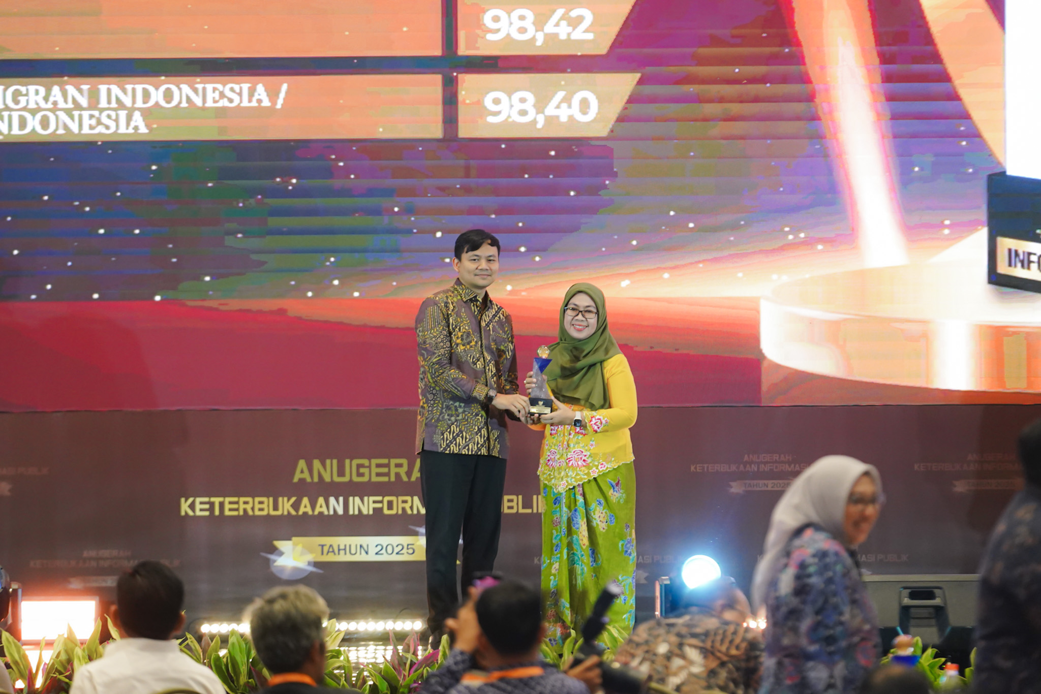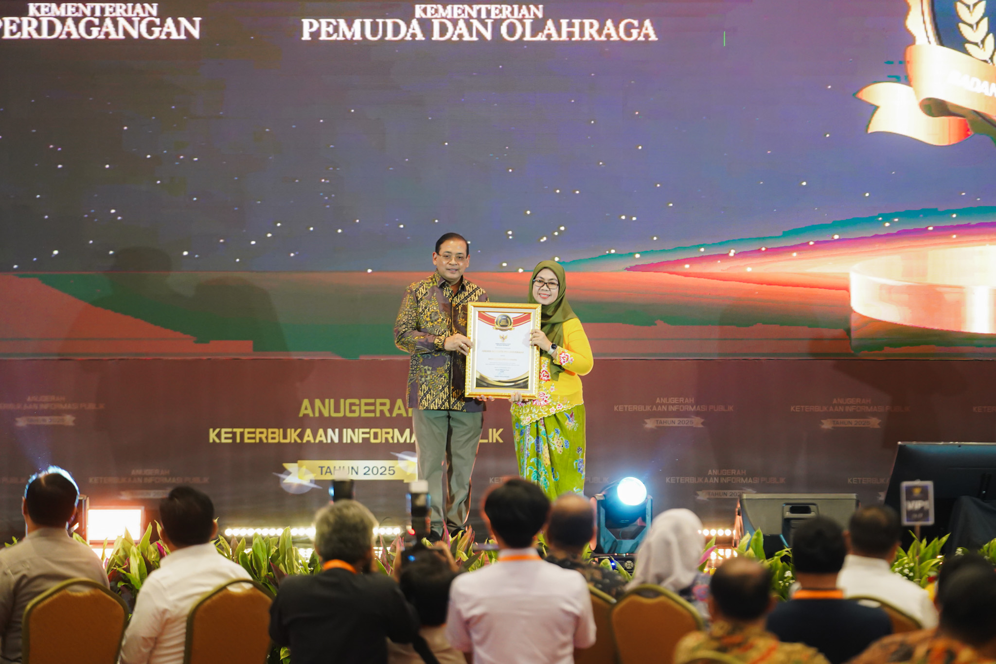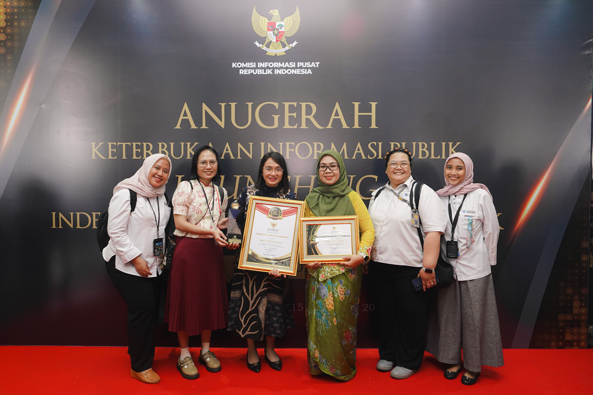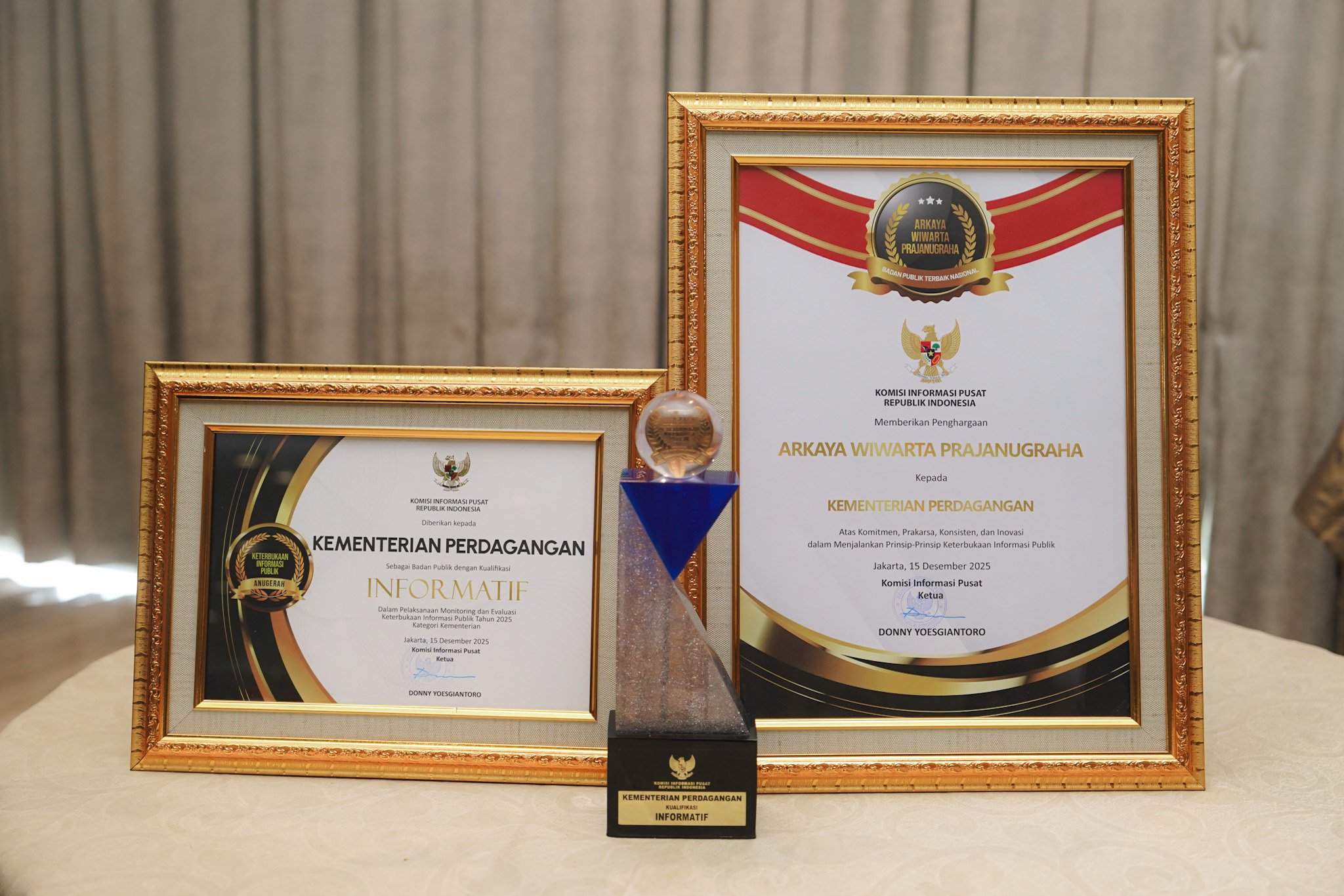 Penghargaan diberikan oleh Ketua Komisi Informasi Pusat, Donny Yoesgiantoro dan Wakil Ketua Komisi Informasi Pusat, Arya Sandhiyudha kepada Staf Ahli Menteri Perdagangan Bidang Manajemen, Tata Kelola, dan Hubungan Antar Lembaga, Susy Herawati.