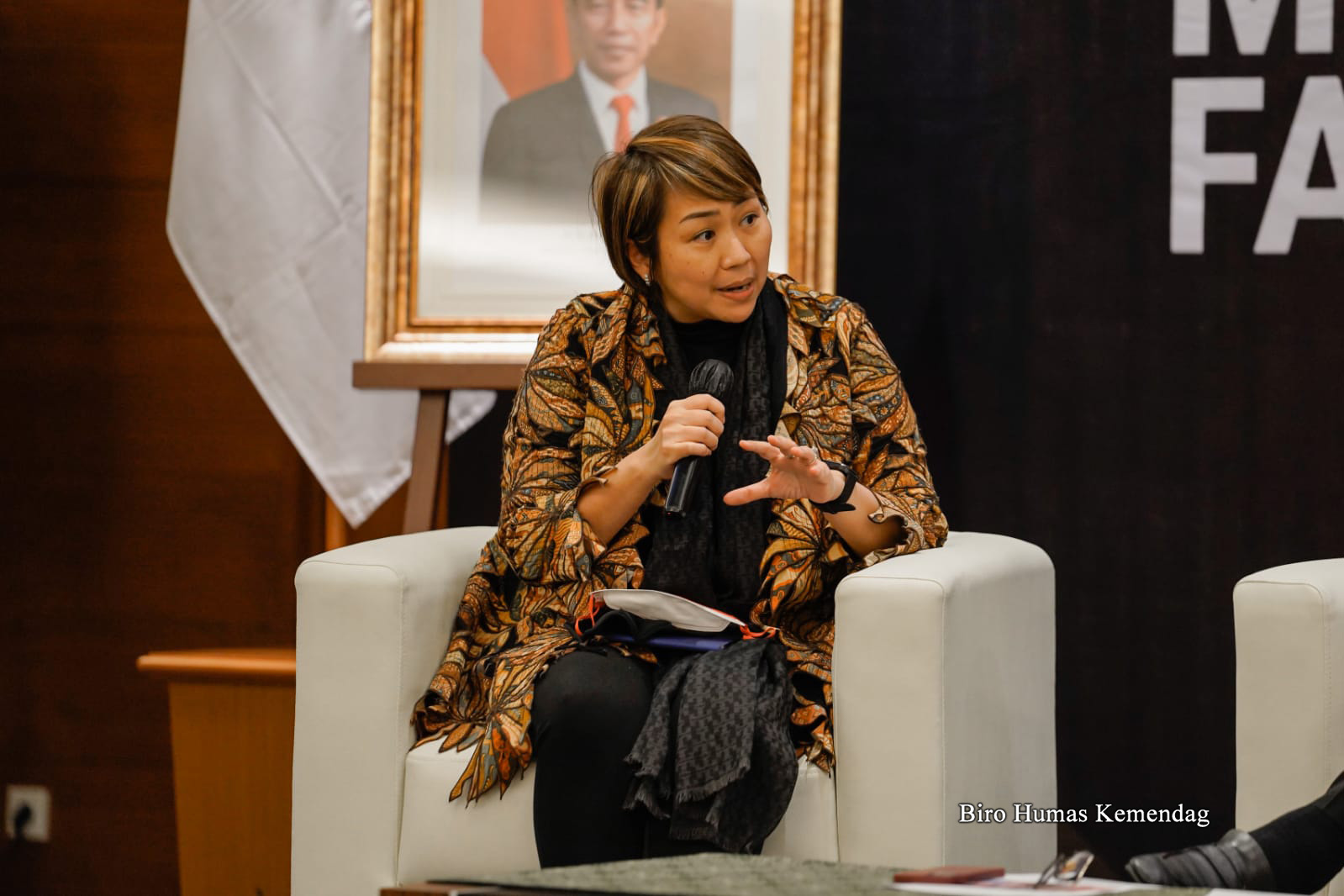 Turut hadir juga sebagai narasumber yaitu Wakil Ketua Komite Promosi Fesyen Muslim, Anne Patricia Sutanto.