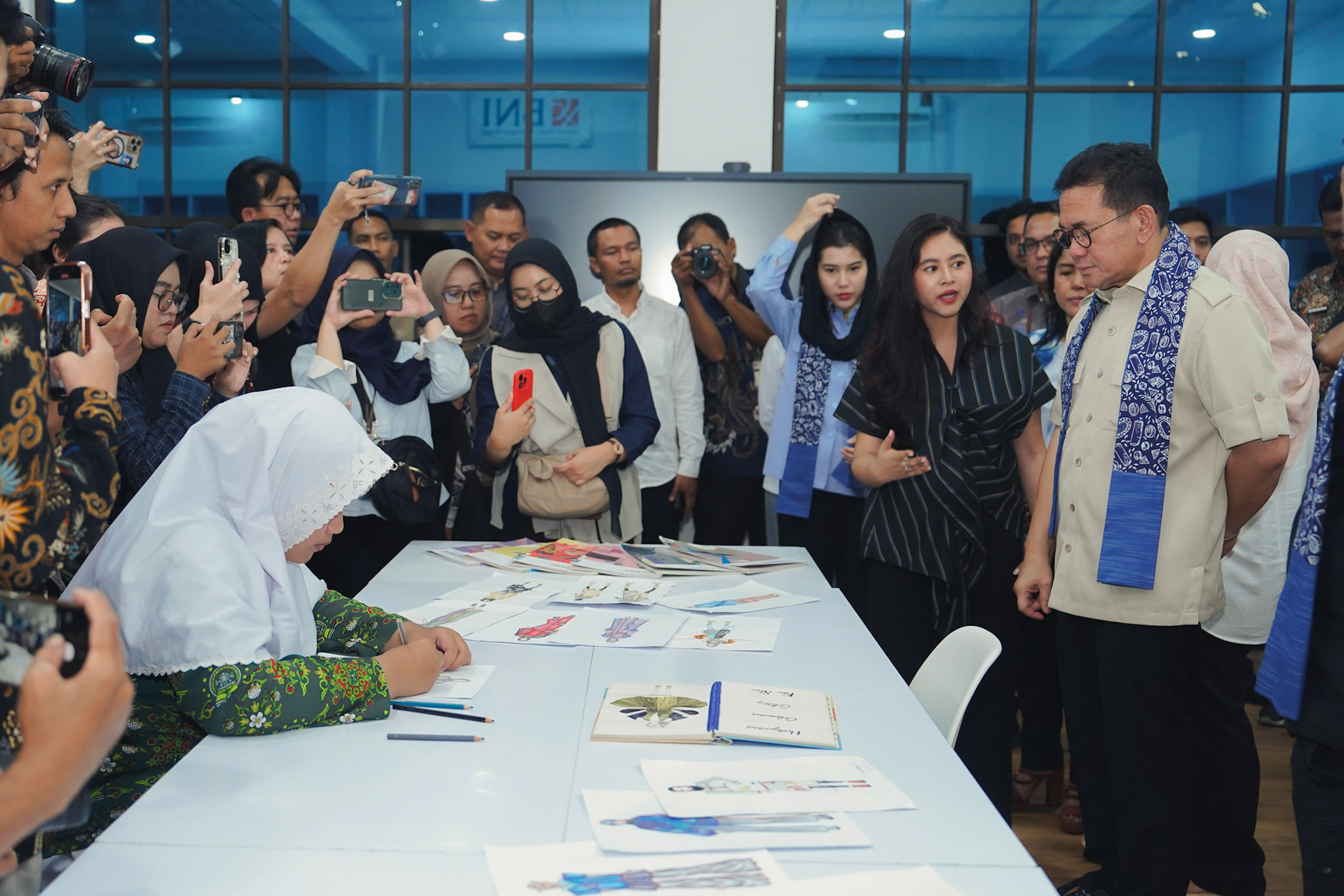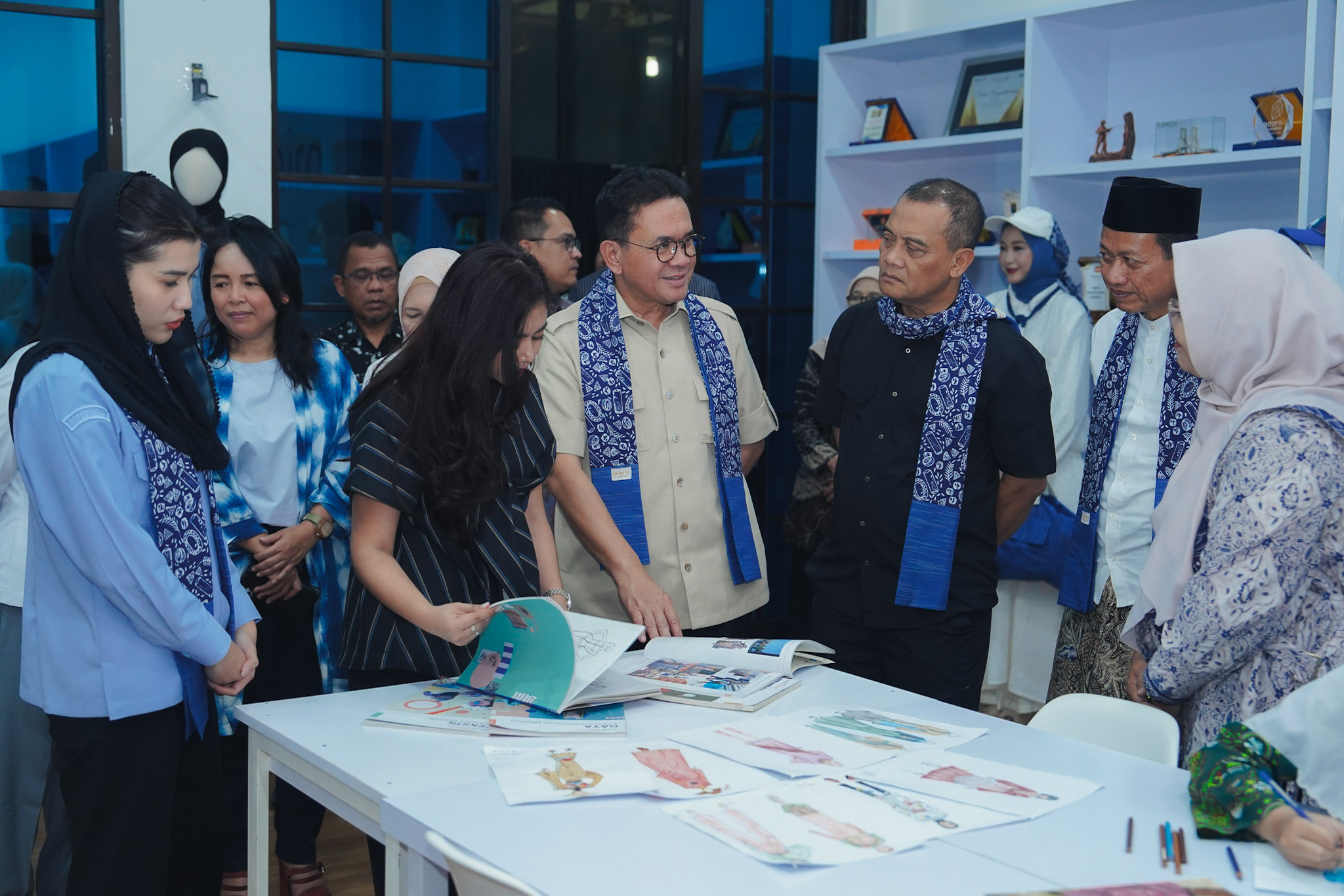 Mendag berkesempatan meninjau fasilitas studio fesyen yang merupakan tempat siswi-siswi berkarya dalam membuat desain atau model baju. Selain itu, Mendag juga meninjau showroom yang menampilkan hasil karya siswi-siswi yang pernah diikutkan dalam berbagai pameran fesyen.