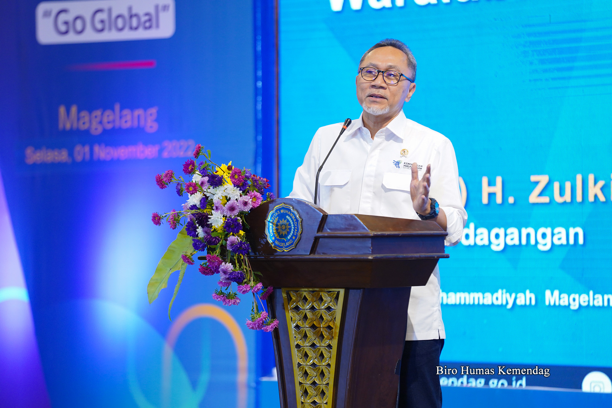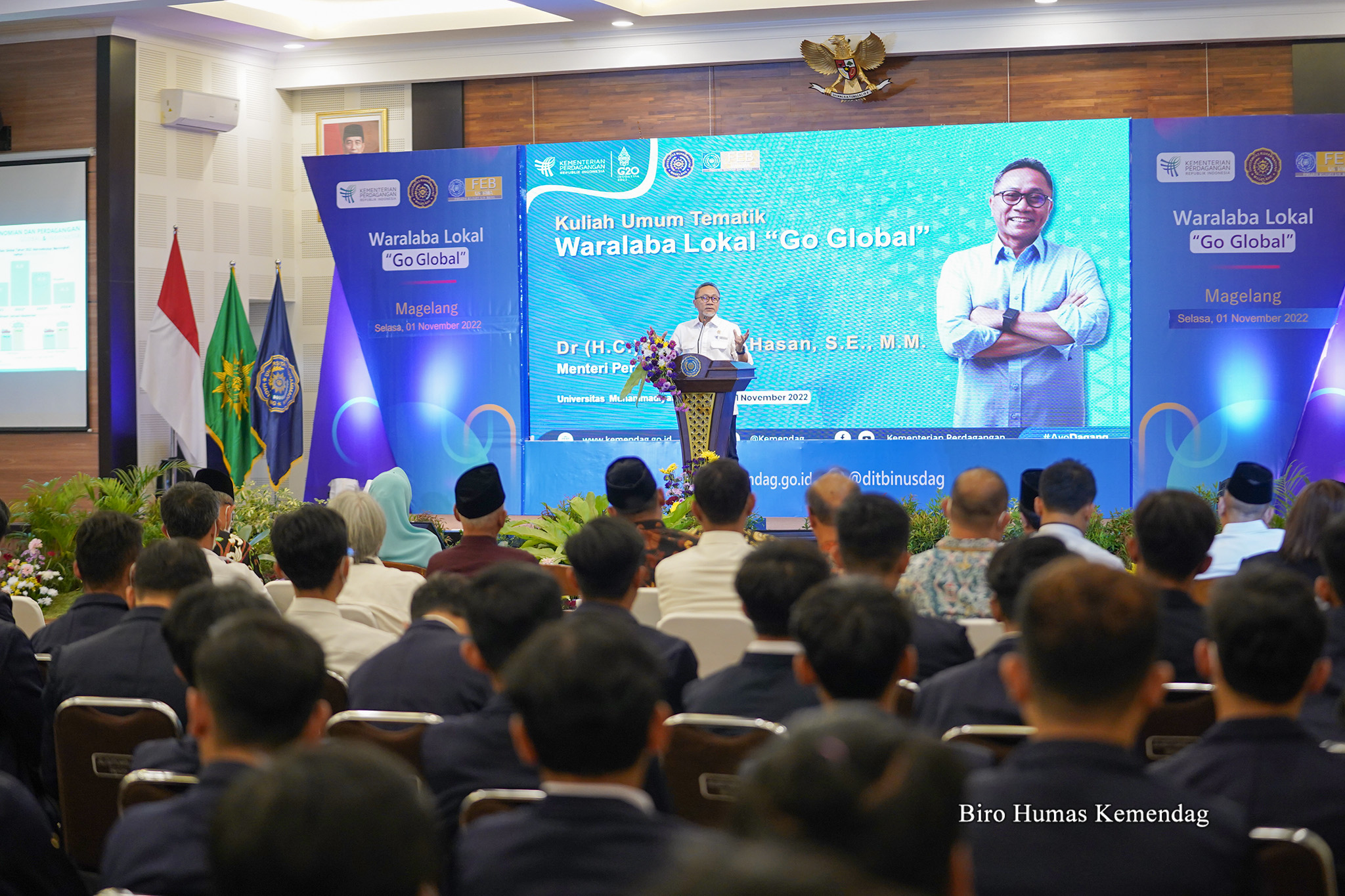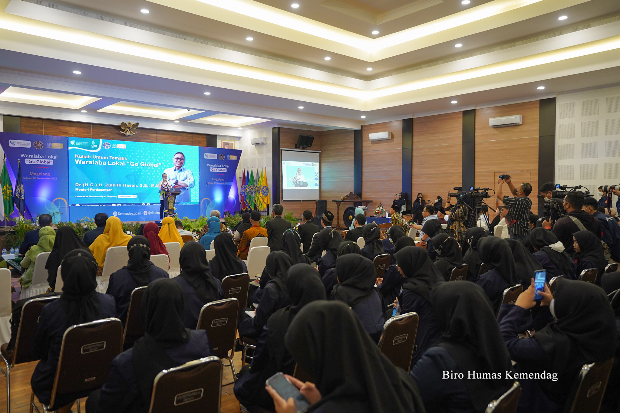 Menteri Perdagangan, Zulkifli Hasan memberikan kuliah umum dengan tema "Waralaba Lokal Go Global" di Universitas Muhammadiyah Magelang, Jawa Tengah, Selasa (1 Nov).