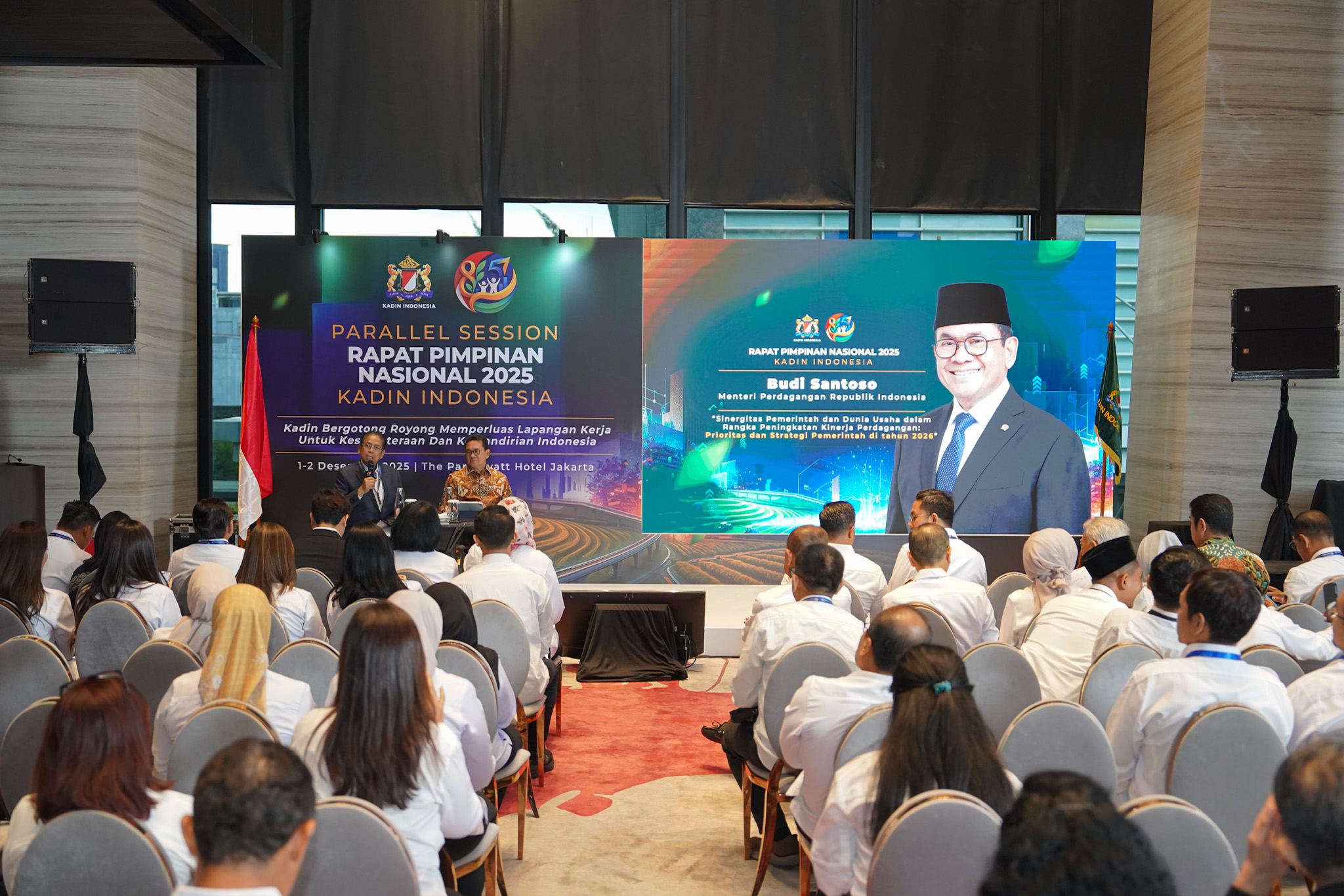Menteri Perdagangan, Budi Santoso menghadiri Rapat Pimpinan Nasional (Rapimnas) 2025 Kamar Dagang dan Industri (Kadin) Indonesia yang berlangsung di Jakarta, Senin (1 Des).