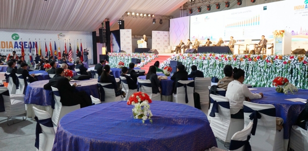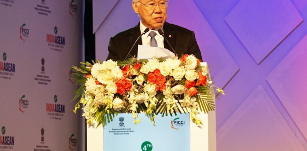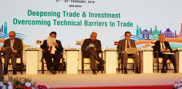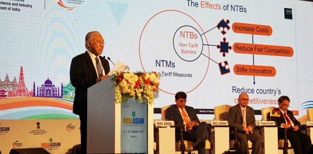 Menteri Perdagangan RI, Enggartiasto Lukita memberikan special address pada plenary session dengan topik utama "Deepening Trade & Investment: Overcoming Technical Barriers to Trade" di Jawaharlal Nehru Stadium, India, Jumat (22/2). Perwakilan dari negara anggota ASEAN dan asosiasi bisnis India juga menyampaikan special adress.