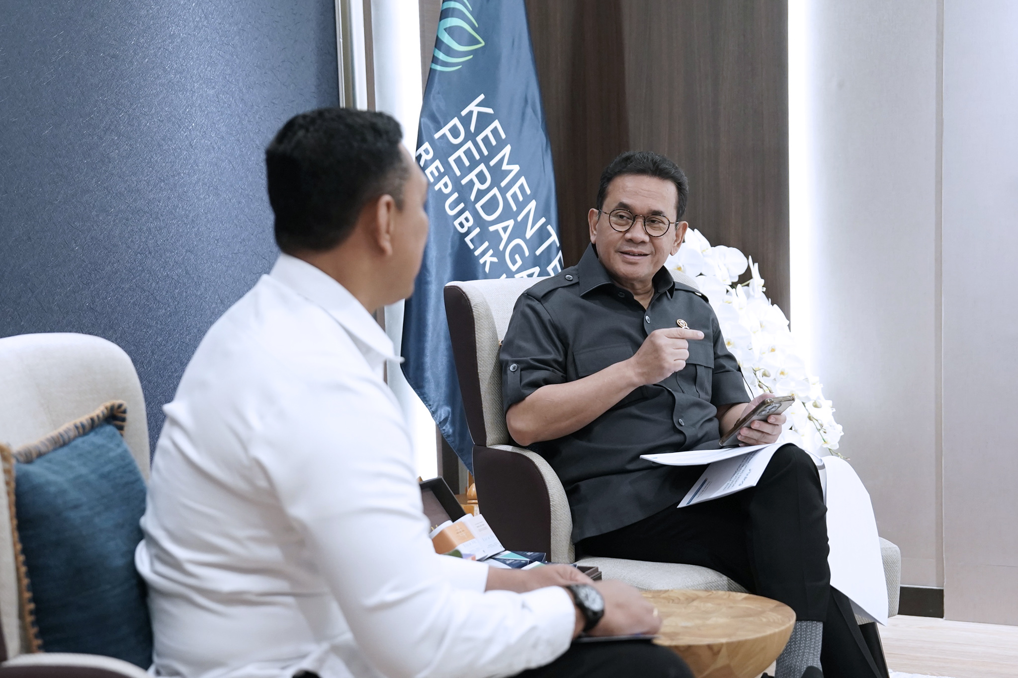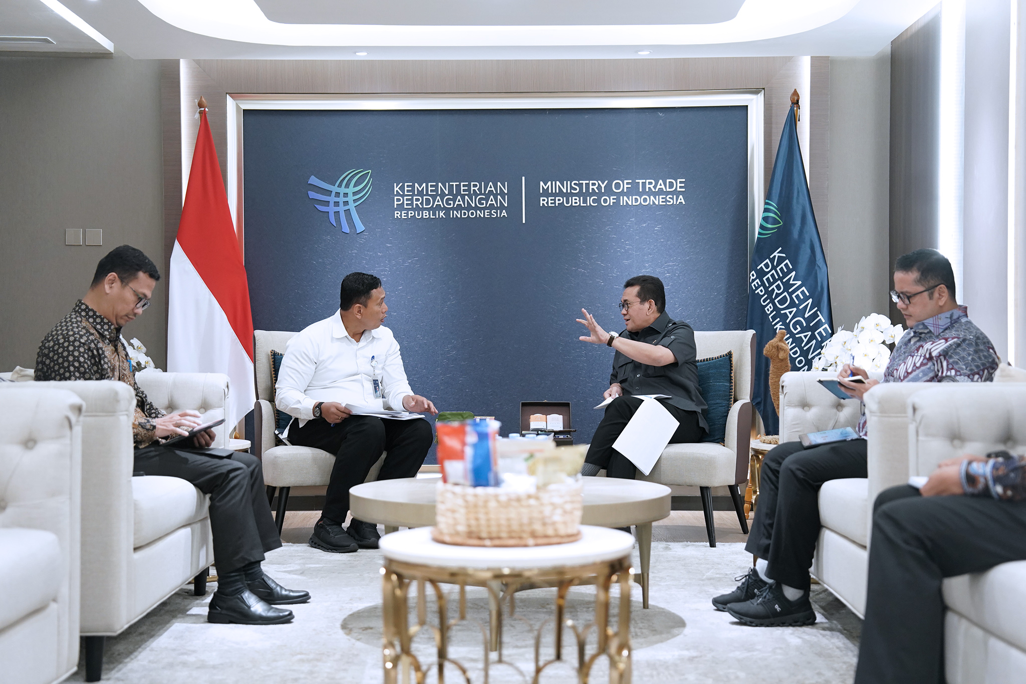 Dalam kesempatan ini, Mendag didampingi oleh Direktur Jenderal Perdagangan Luar Negeri, Tommy Andana; Direktur Impor, Iman Kustiaman; dan Direktur Pengembangan Ekspor Produk Primer, Miftah Farid.