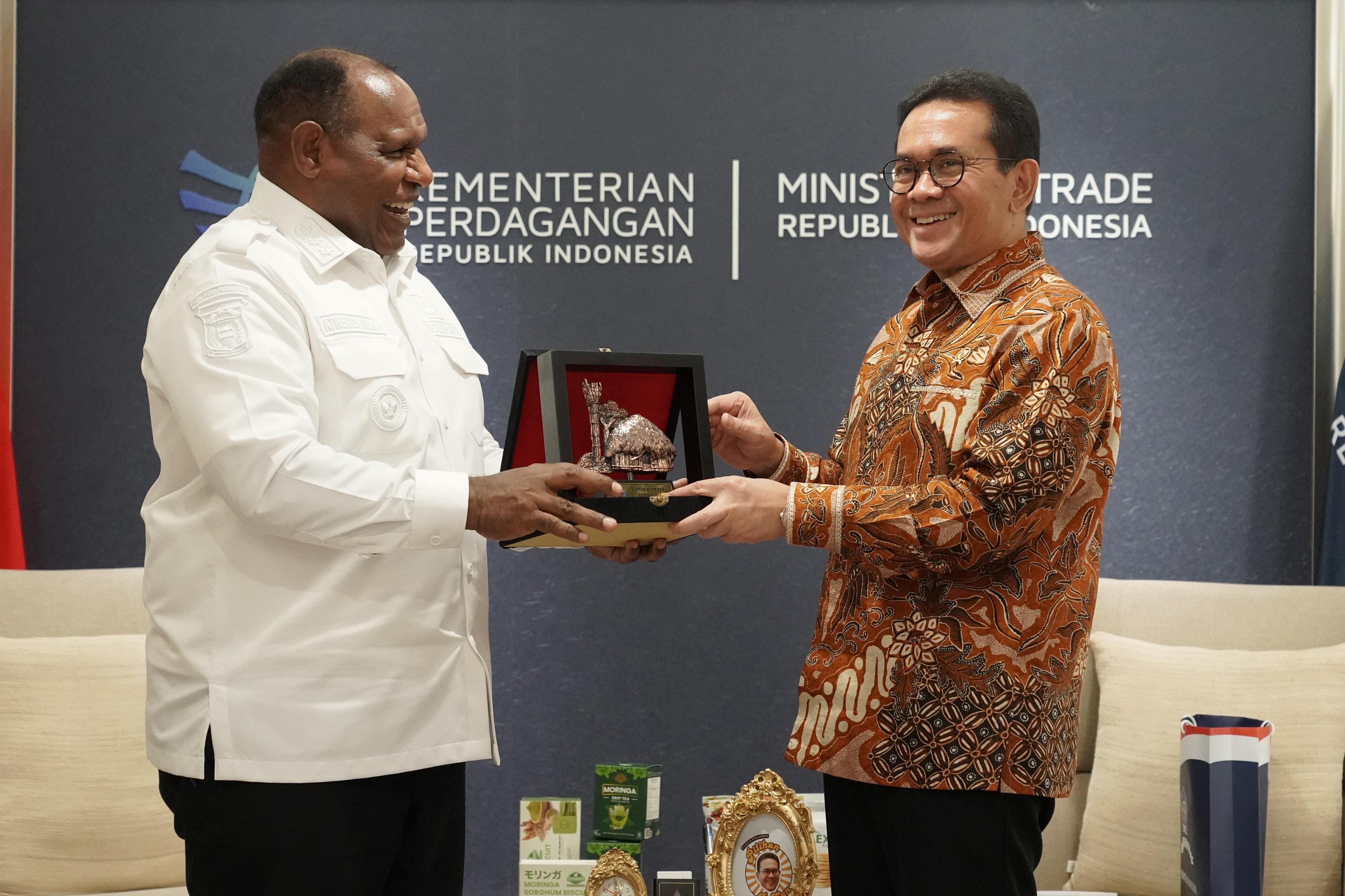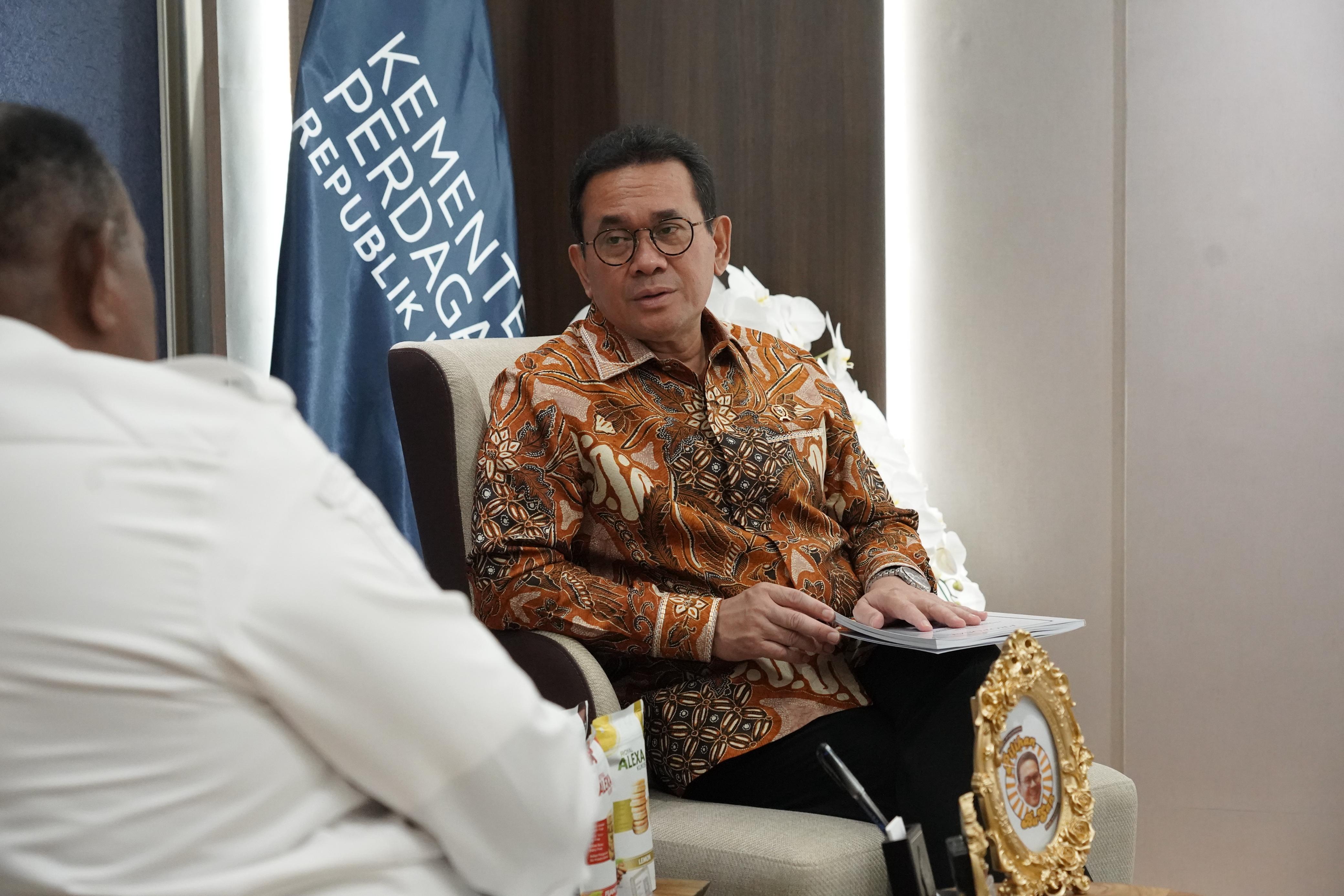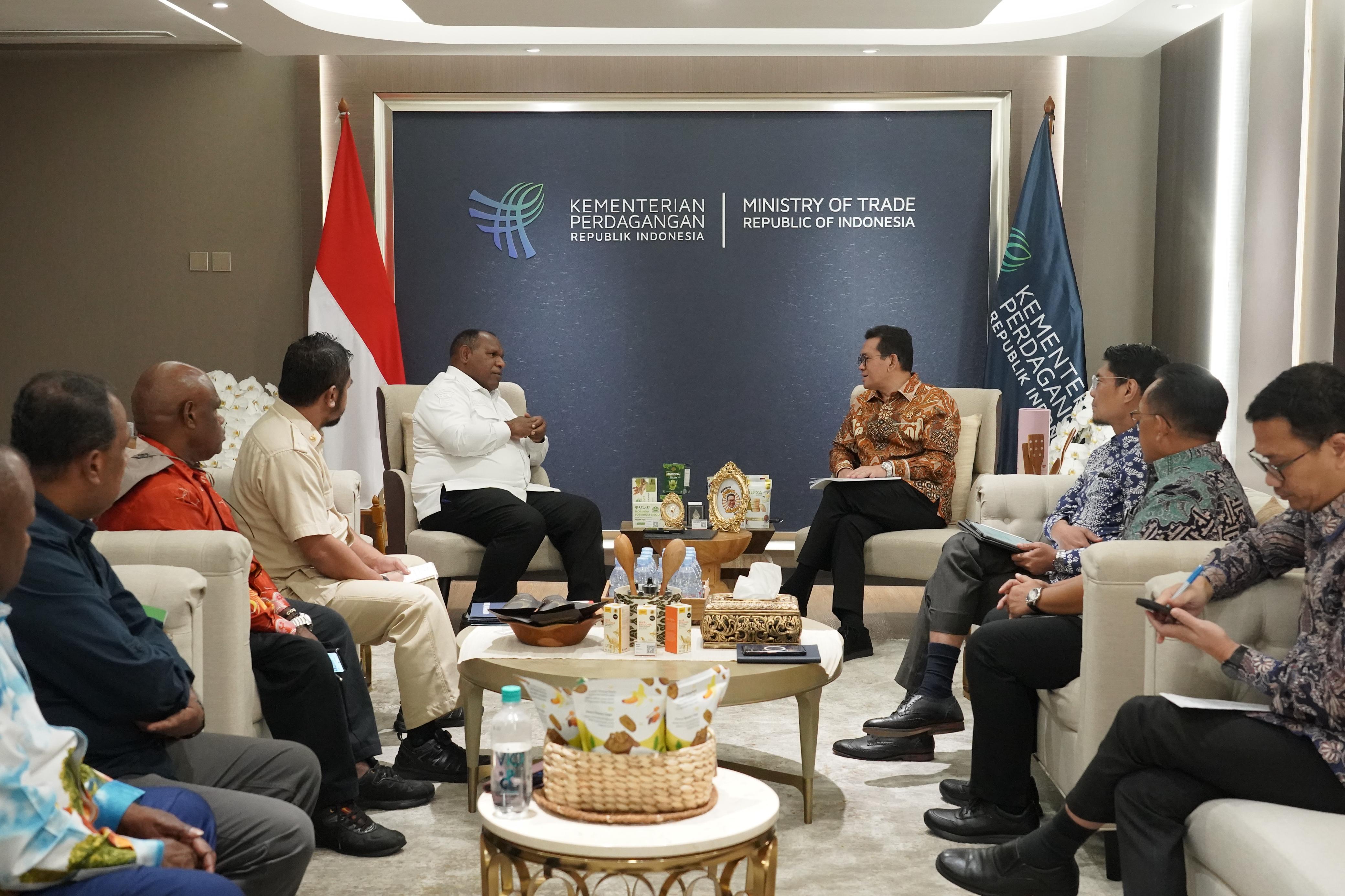 Menteri Perdagangan, Budi Santoso menerima kunjungan Bupati Jayawijaya, Atenius Murib di Kantor Kementerian Perdagangan, Jakarta, Kamis (26 Feb).