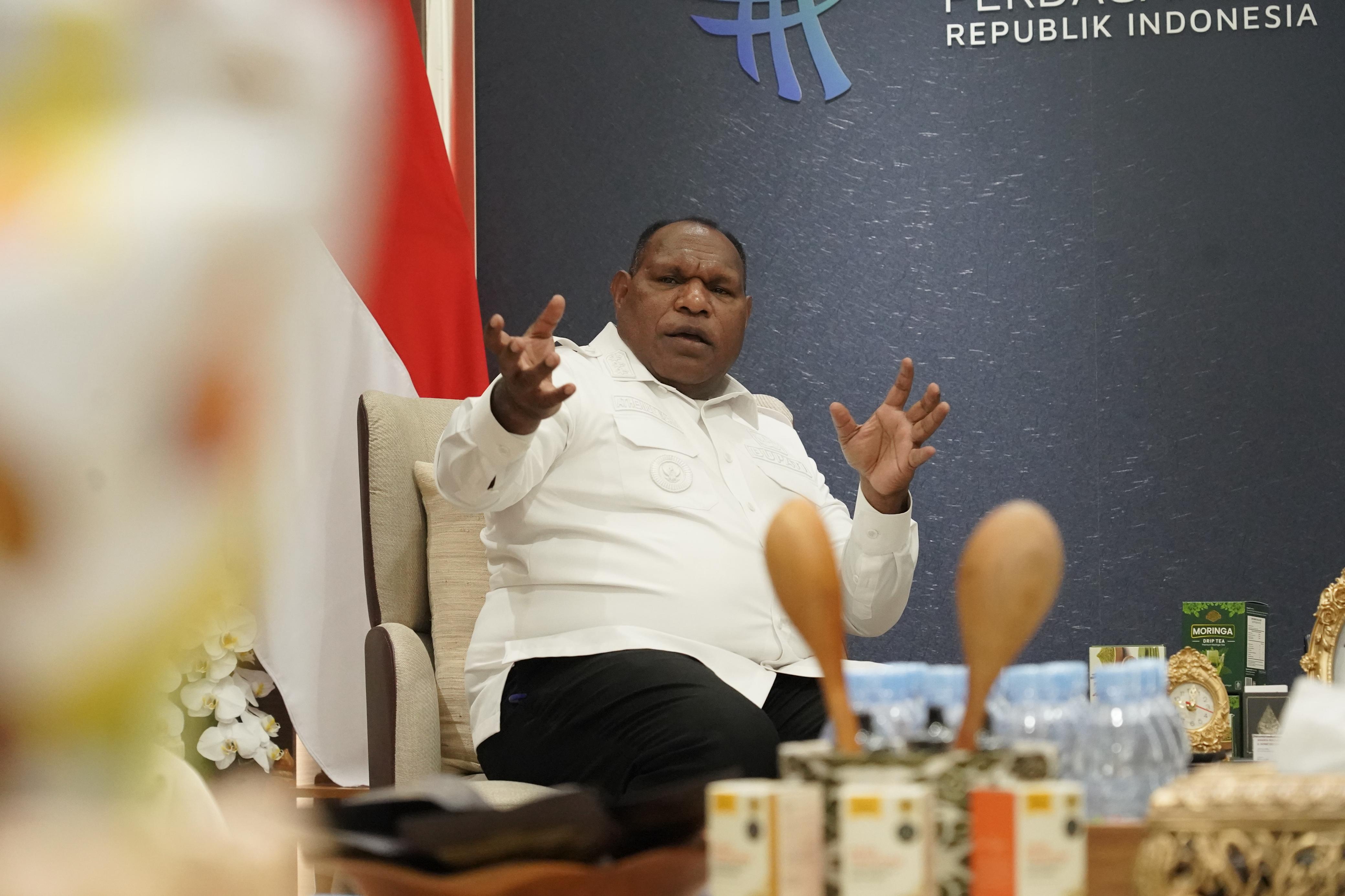 Bupati Jayawijaya, Atenius Murib menyampaikan kondisi serta potensi perdagangan di Jayawijaya, termasuk peran pasar rakyat dalam mendukung perekonomian daerah.