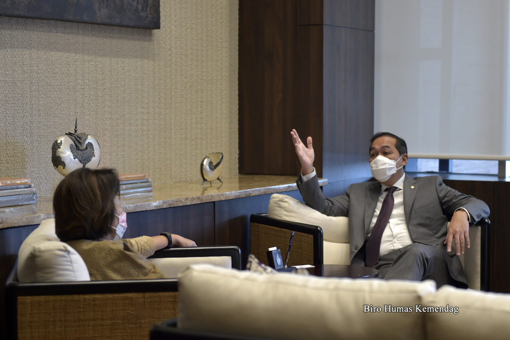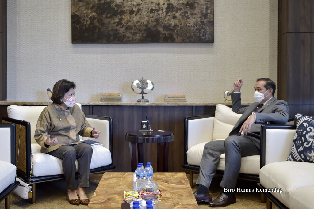 Dalam kesempatan tersebut, Mendag Lutfi dan Ibu Mari Elka juga membahas pemulihan ekonomi pasca-Covid-19.