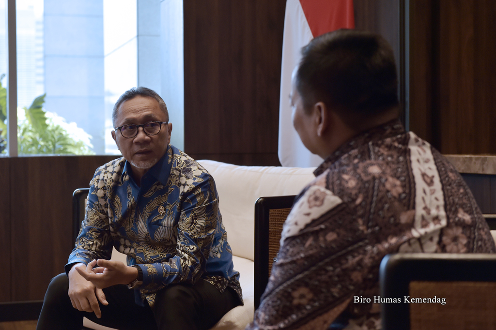 Menteri Perdagangan, Zulkifli Hasan menerima kunjungan Direktur Utama PT Permodalan Nasional Madani (PNM), Arief Mulyadi di Kantor Kementerian Perdagangan, Jakarta, Jumat (8 Juli).