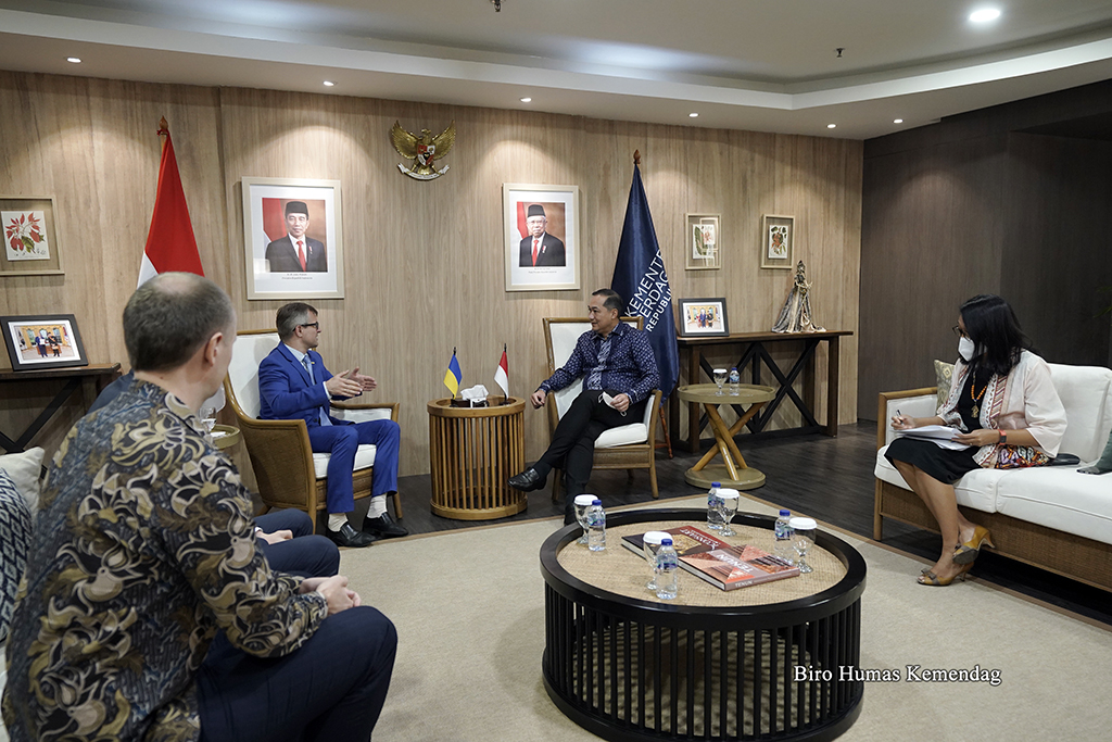 Menteri Perdagangan RI Muhammad Lutfi menerima kunjungan Duta Besar Ukraina Jakarta, Vasyl Hamianin di Kantor Kementerian Perdagangan, Jakarta, Kamis (16 Des).