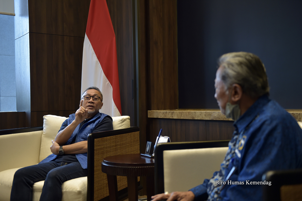Menteri Perdagangan, Zulkifli Hasan menerima kunjungan Ketua Umum Gabungan Koperasi Produsen Tahu Tempe Indonesia (GAKOPTINDO), Aip Syaifuddin di Kantor Kementerian Perdagangan, Jakarta, Kamis (7 Juli).