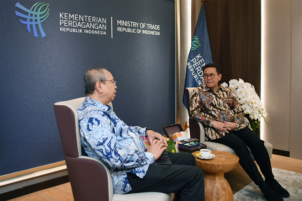 Menteri Perdagangan Budi Santoso menerima kunjungan Konsul Jenderal RI Mumbai, India, Eddy Wardoyo yang berlangsung di Kantor Kementerian Perdagangan, Jakarta, Rabu (11 Feb).