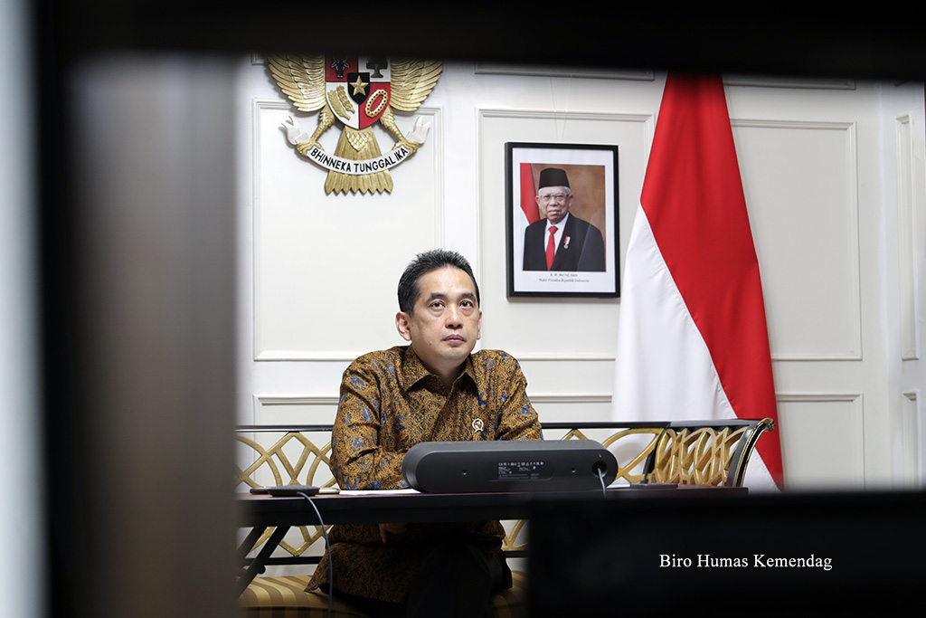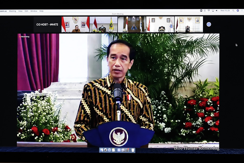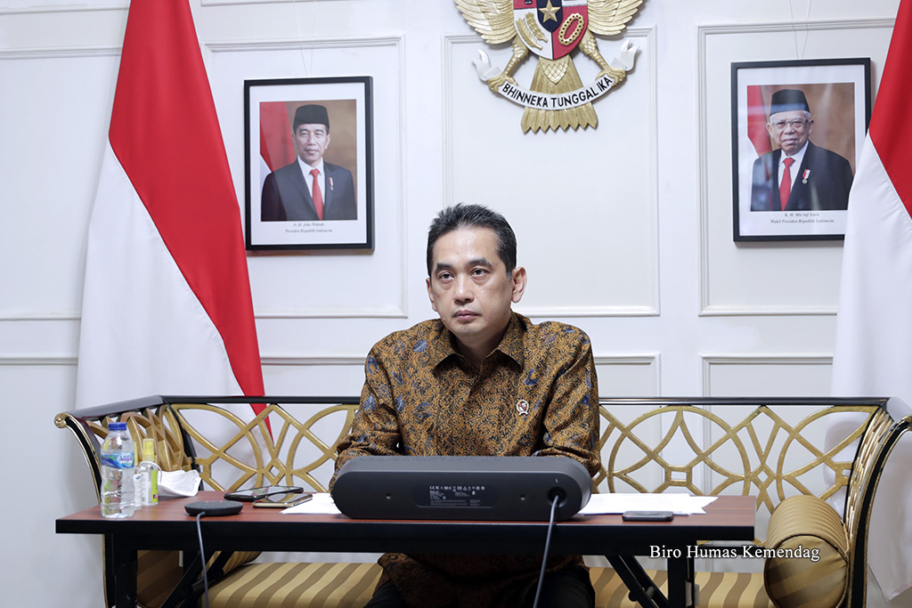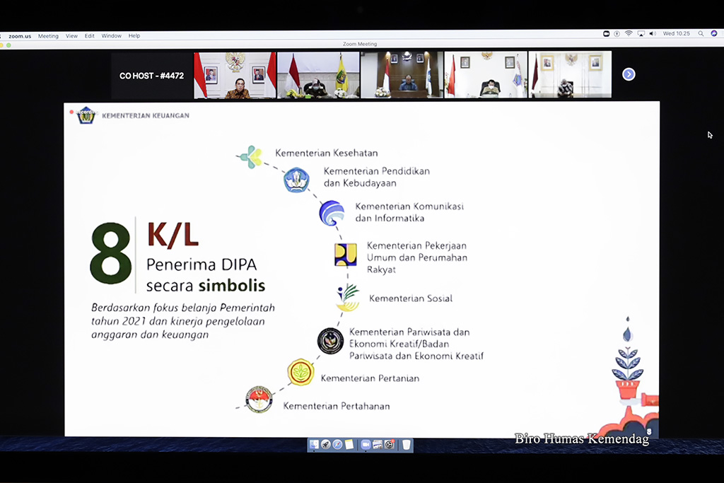 Menteri Perdagangan, Agus Suparmanto menghadiri penyerahan Daftar Isian Pelaksanaan Anggaran (DIPA) dan Rincian Alokasi Transfer ke Daerah dan Dana Desa (TKDD) Tahun Anggaran 2021 oleh Presiden RI, Joko Widodo secara virtual, Rabu (25 Nov).
