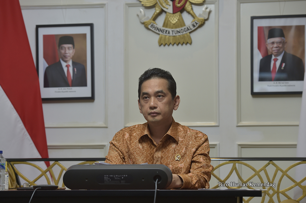 Menteri Perdagangan, Agus Suparmanto menghadiri sekaligus memberikan sambutan dalam acara Webinar DPP GP Jamu yang berlangsung secara virtual di Jakarta, Selasa (15 September).