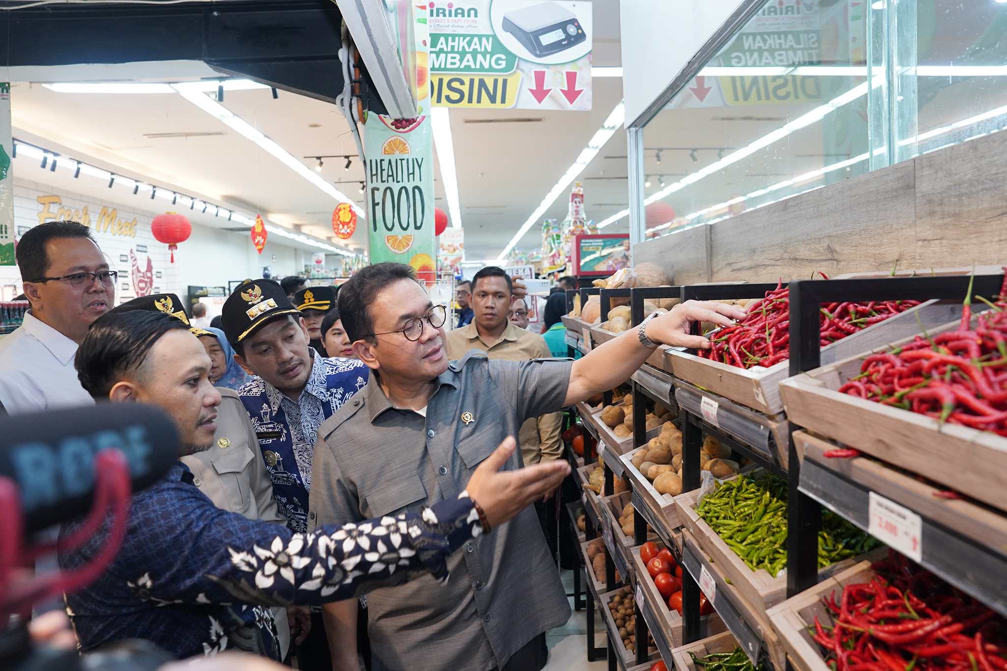 Menteri Perdagangan, Budi Santoso mengunjungi ritel modern Irian Supermarket & Dept. Store dan distributor telur UD. Hasil Ternak di Kota Tebing Tinggi, Sumatra Utara, Jumat (27 Feb). Kunjungan ini untuk memastikan geliat perdagangan pascapemulihan bencana banjir pada November 2025 lalu.