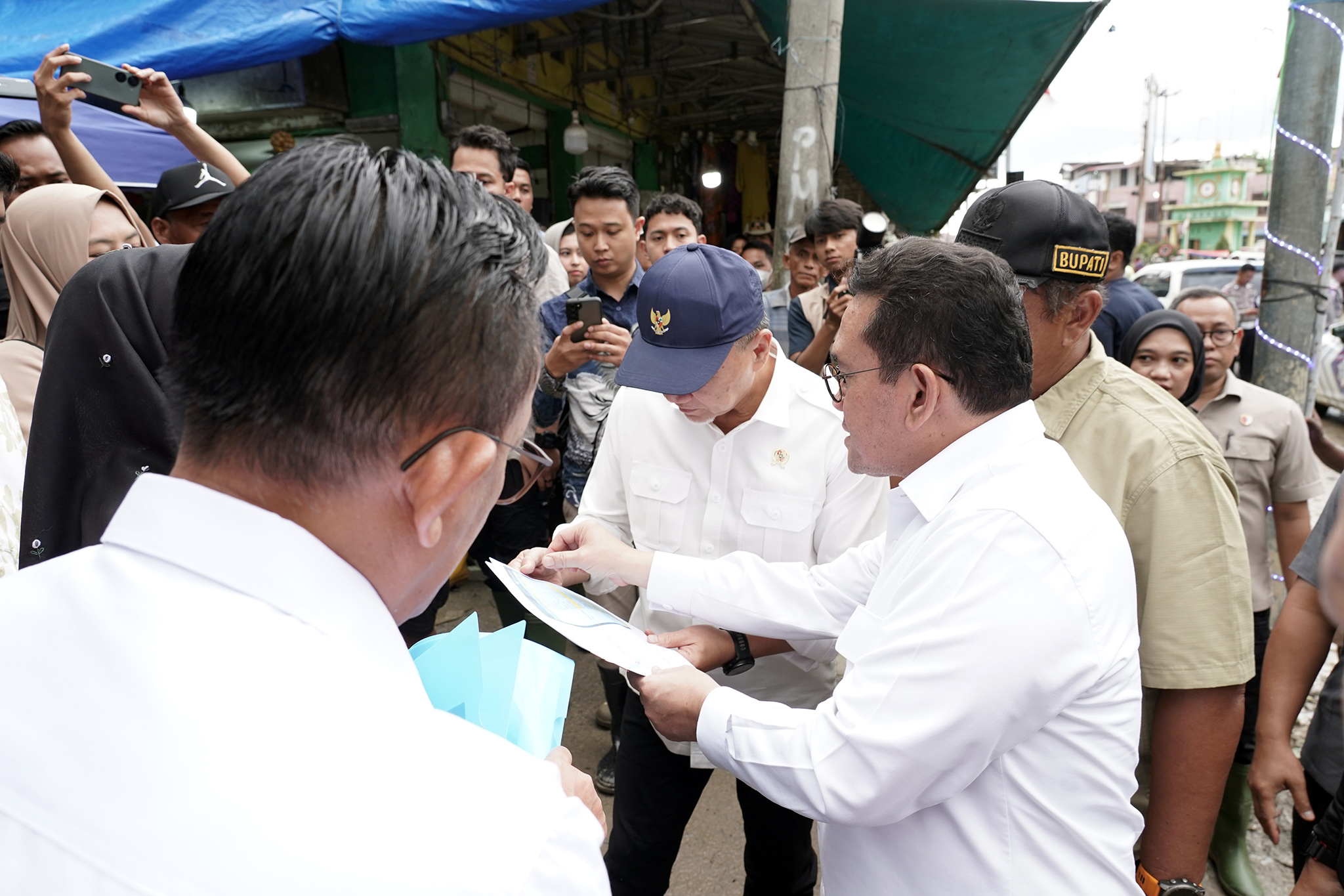 Menteri Perdagangan, Budi Santoso meninjau secara langsung proses pemulihan Pasar Kuala Simpang di Kabupaten Aceh Tamiang, Provinsi Aceh pada Jumat, (9 Jan).