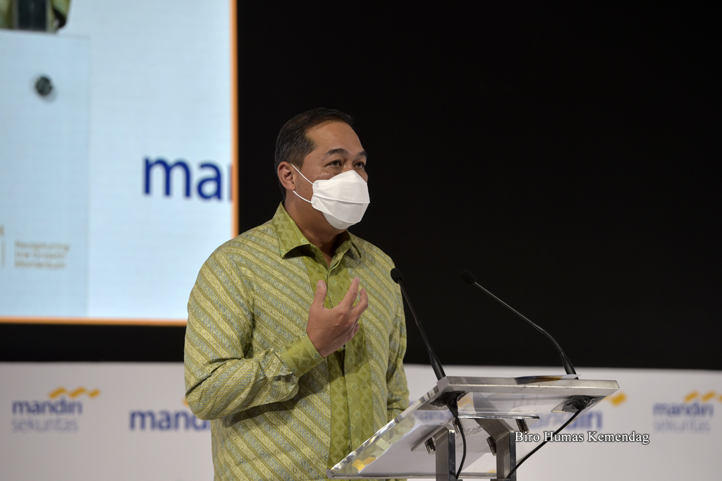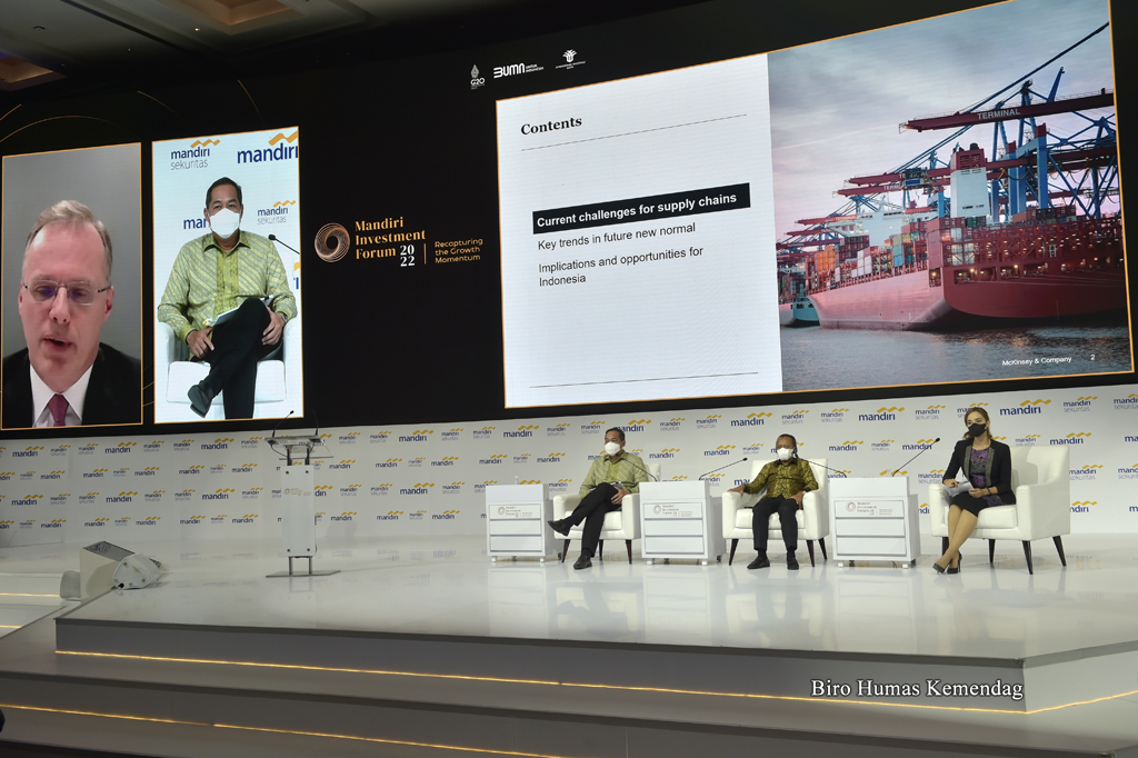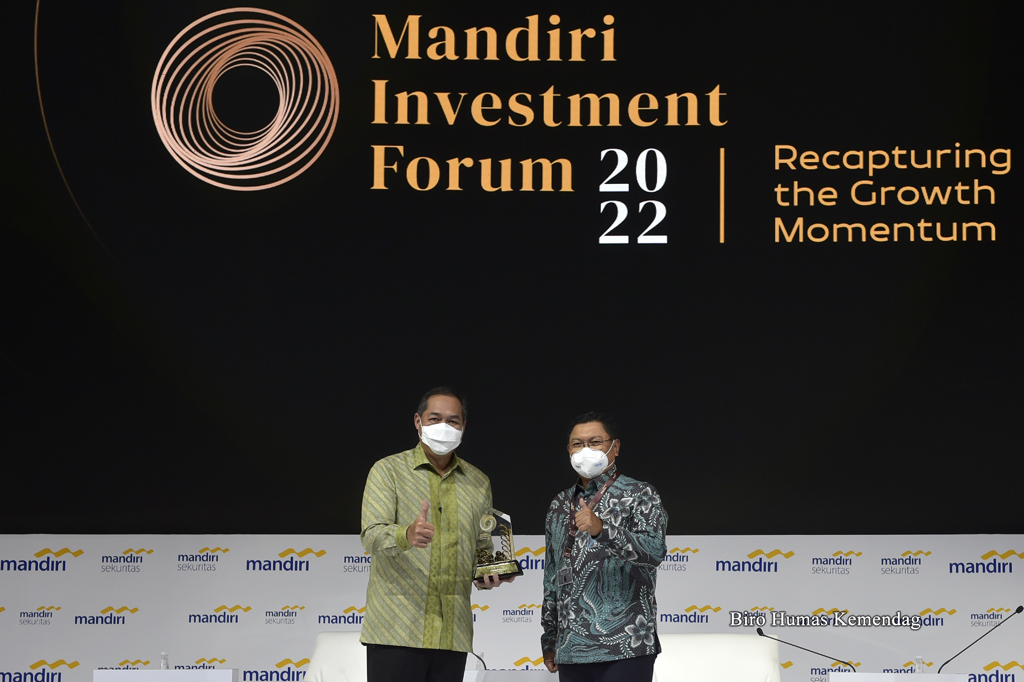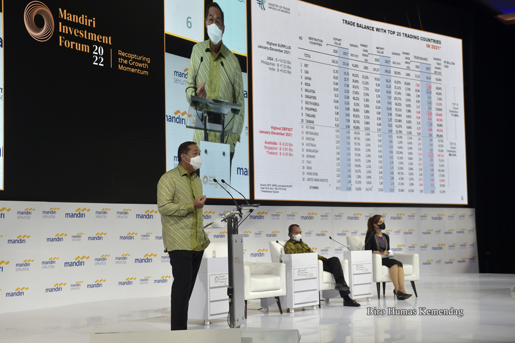 Menteri Perdagangan, Muhammad Lutfi menjadi narasumber dalam acara Mandiri Investment Forum 2022 yang berlangsung di Hotel Fairmont, Jakarta, Rabu (9 Feb).