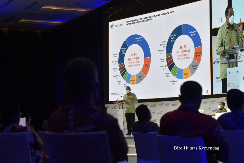 Mendag dalam paparannya mengungkapkan bahwa, 2021 merupakan tahun pemecahan rekor bagi perdagangan dan investasi Indonesia yang melampaui target dari Presiden. Ekspor Indonesia naik mencapai 41,9 persen dibanding periode yang sama 2020.