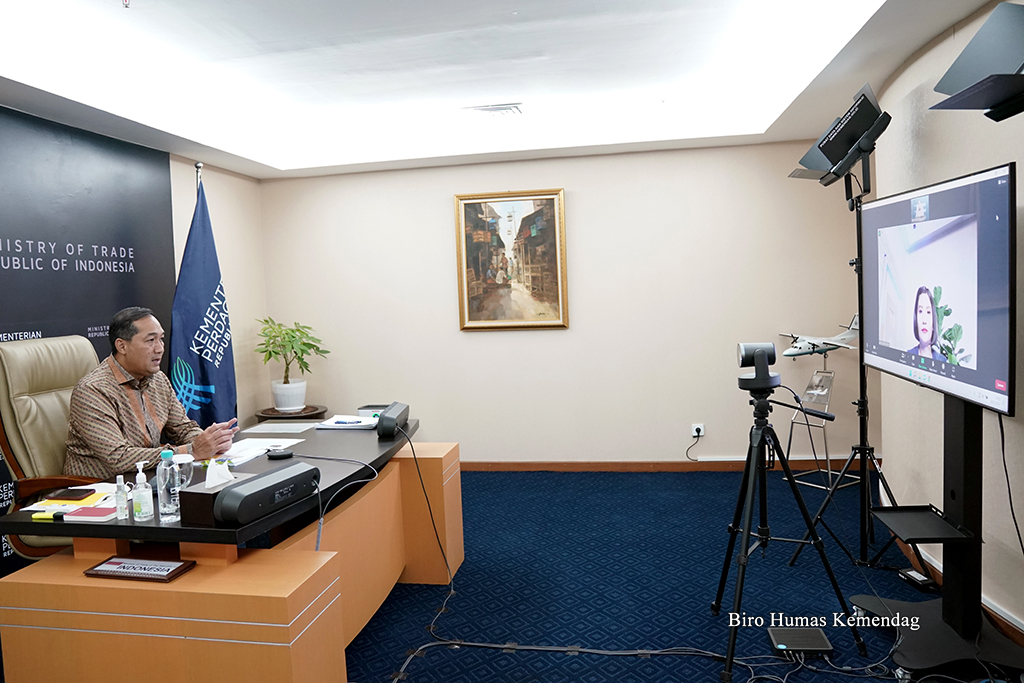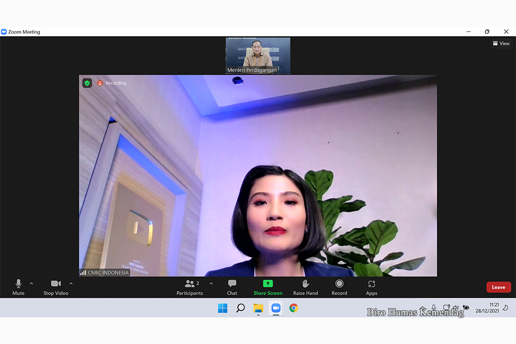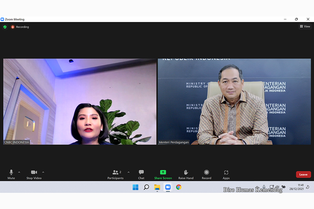 Menteri Perdagangan, Muhammad Lutfi menjadi narasumber pada "Economic Review Squawk Box" CNBC Indonesia TV secara virtual di Kantor Kementerian Perdagangan, Jakarta, Jumat (31 Des).