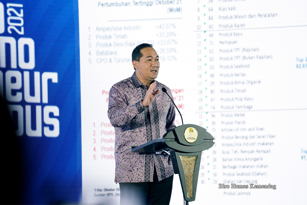 Menteri Perdagangan, Muhammad Lutfi menjadi pembicara pada Digital Technopreneur Festival (DTF) 2021 dan Socio Technopreneur Campus (STC) 2021 dengan tema "Pengusaha Muda dan Penyehatan Neraca Perdagangan" di Hotel Kempinski, Jakarta, Jumat (19 Nov).