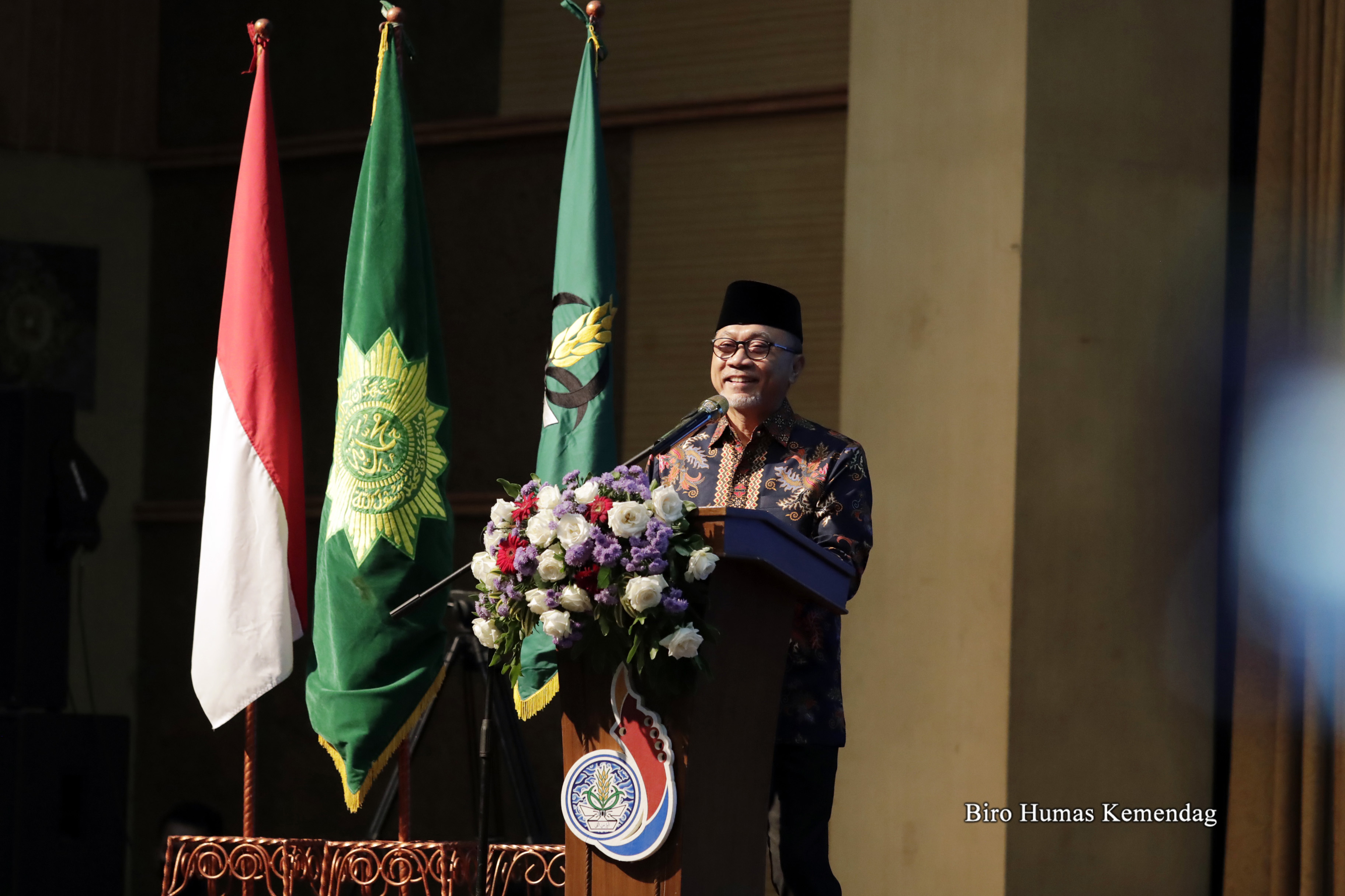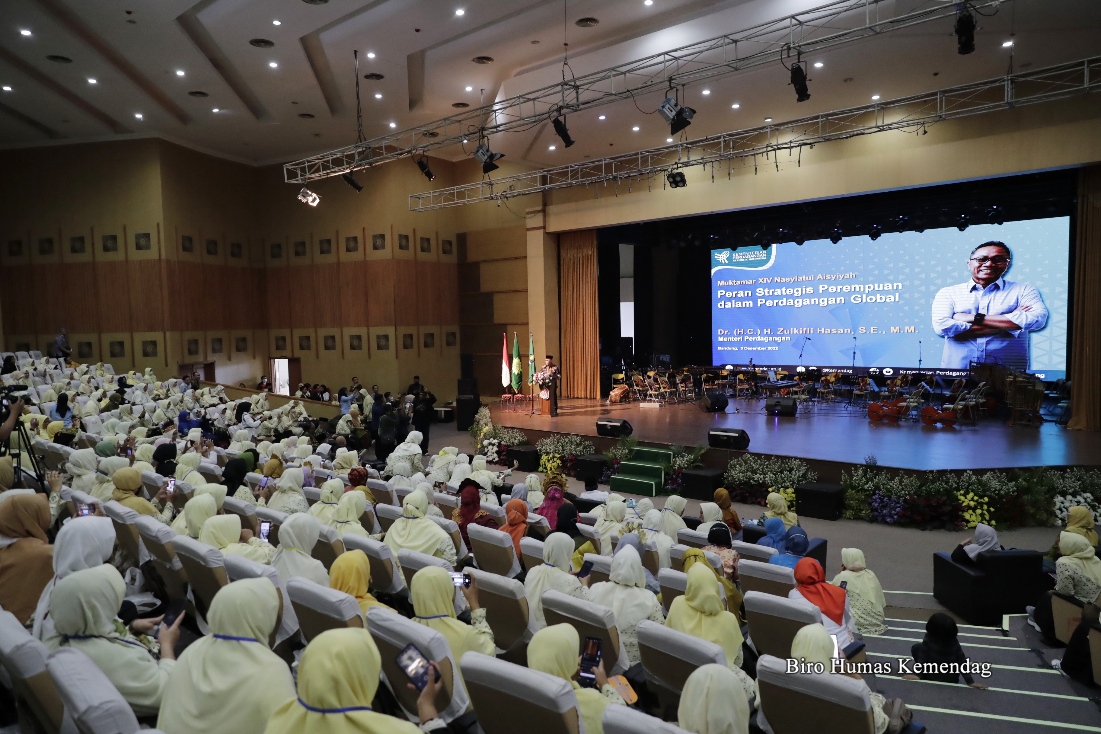 Menteri Perdagangan, Zulkifli Hasan memberikan sambutan pada acara Muktamar XIV Nasyiatul Aisyiyah yang berlangsung di Kabupaten Soreang, Jawa Barat, Sabtu (3 Des).