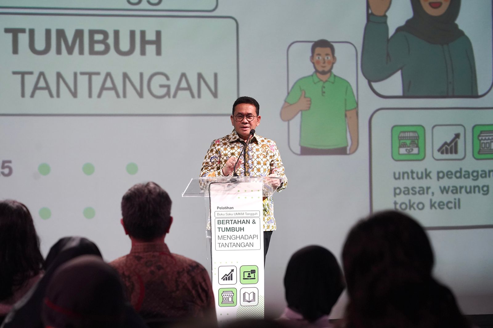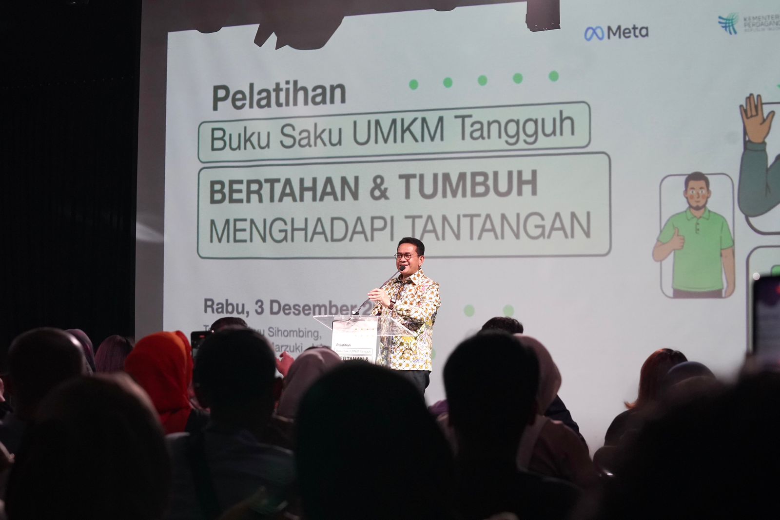 Menteri Perdagangan, Budi Santoso menjadi pembicara pada pelatihan dan peluncuran Buku Saku UMKM Tangguh: Bertahan dan Tumbuh Menghadapi Tantangan di Taman Ismail Marzuki, Jakarta, Kamis (3 Des).